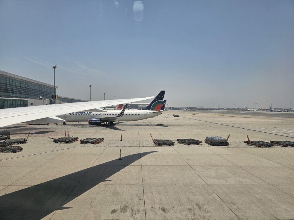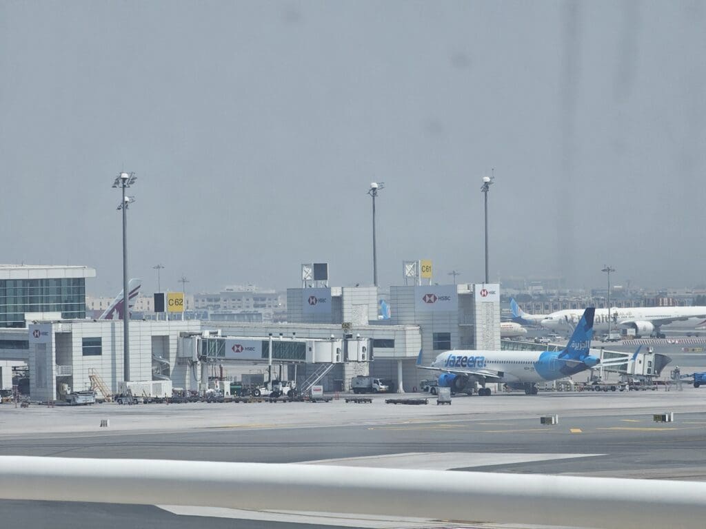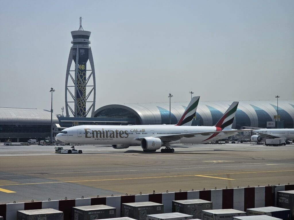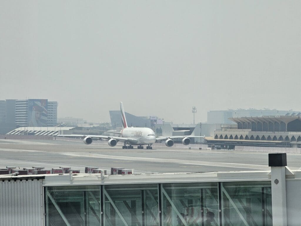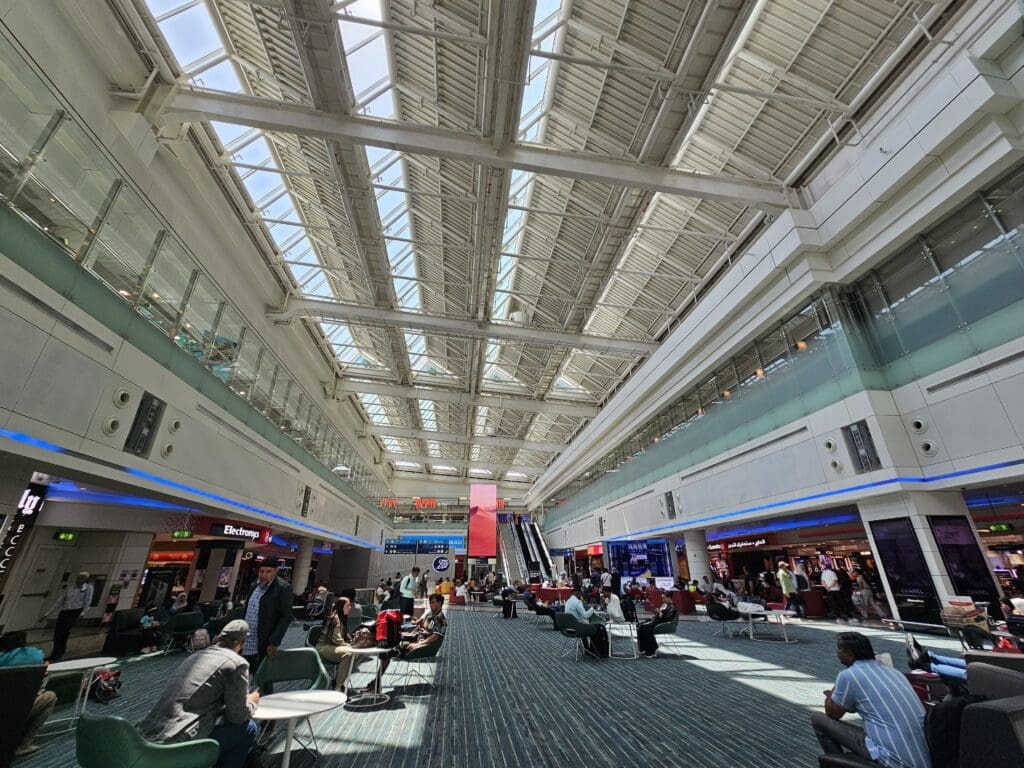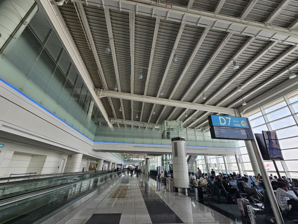 Upon coming to a halt outside the check-in hall, I said my farewells before darting out and making several steps through the boiling hot morning heat, soon making it to the nicely air-conditioned landside departures area on the terminal’s first floor. With this being the sixth time departing from Terminal 1, I had a good idea of what to expect from the terminal, and inside, this was as busy as ever, with plenty of passengers, many of whom had heaps and heaps of luggage precariously piled high on carts, scurrying about in all directions. As its name may imply, Terminal 1 is Dubai International Airport’s oldest still-operational terminal, and perhaps expectedly, its landside area is not particularly modern. Constructed well before Dubai became a skyscraper-filled international hub, this is a little less glitzy and glamorous than you may expect from the airport’s second-busiest terminal and lacks any spectacular architectural features. Nevertheless, this has never left me with any major complaints, and that morning was no different. Inside, this was clean, tidy and complete with fast complimentary wifi that worked well throughout the landside and airside areas. In terms of facilities, this features several shops, cafés and eateries, several of which are located in a spacious food court that sits above the check-in area. With this being one of the only places in the landside portion of the terminal to offer airside views, this is one of the better places for enthusiasts to sit and wait. However, a combination of dirty windows and a lack of understanding of plane spotting amongst the Emirati authorities means that this is not a spotter’s paradise, and I would caution against openly taking too many photos there.