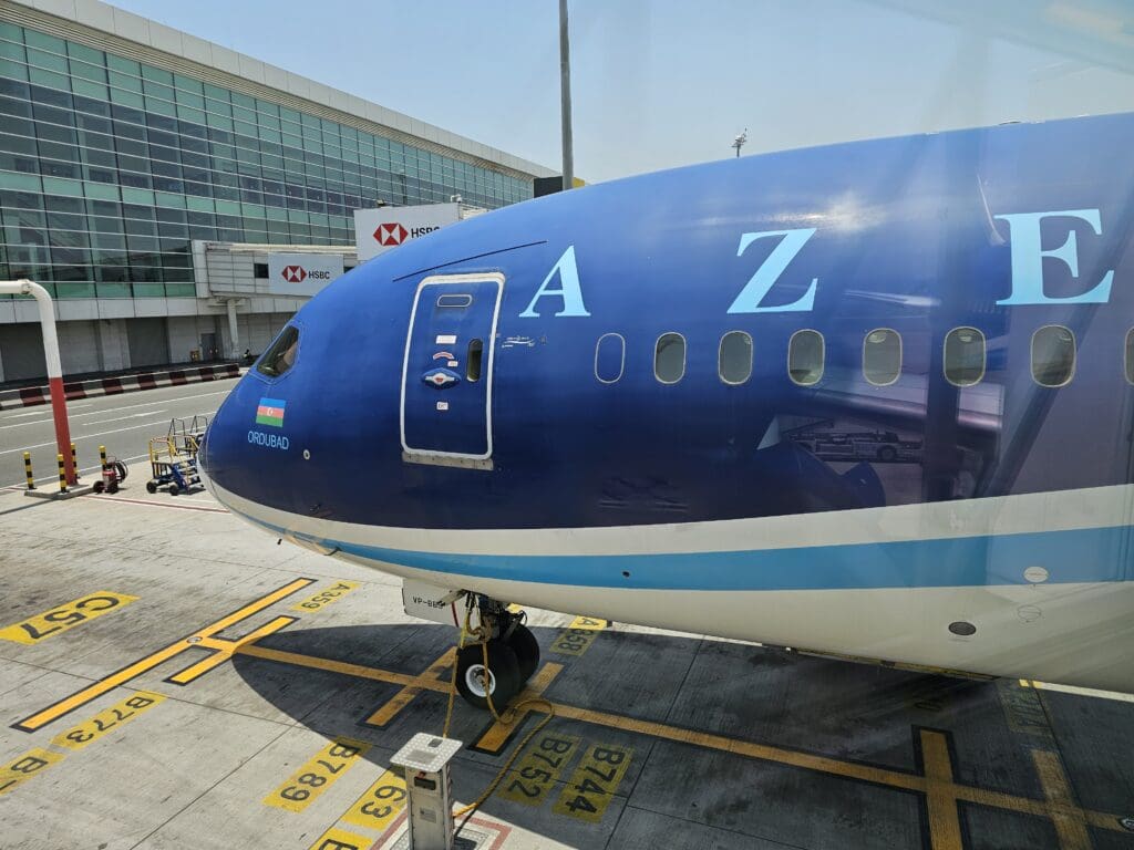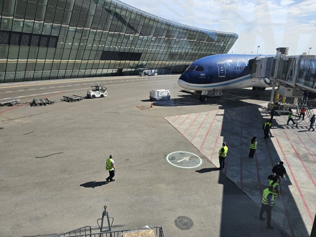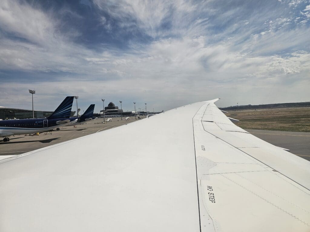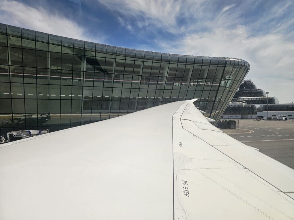 Following a smooth approach, at 1538, the sprawl of Heydar Aliyev International Airport appeared, and moments later, the Dreamliner made a firm return to Earth before decelerating with haste. In the usual manner, as we vacated the runway and commenced our short taxi to the airport’s modern international terminal, the Purser performed their post-arrival announcement, thanking passengers, informing us of the local time and advising all to remain seated with their seatbelts fastened. Soon, the aircraft came to a gentle halt at Stand A01, arriving there almost thirty minutes ahead of schedule. Once our engines had spooled down, as is often the case across the world, many passengers jumped up in a desperate rush to disembark, and thankfully for those in a rush, it took no more than a couple of minutes for the jetbridge to be connected and for disembarkation to commence. Seated at the front of the Economy cabin, it didn’t take long for me to stand up, head through the Premium Economy cabin and disembark, receiving a lukewarm farewell and thanks in Russian as I did so, ending my second-ever flight with Azerbaijan Airlines.