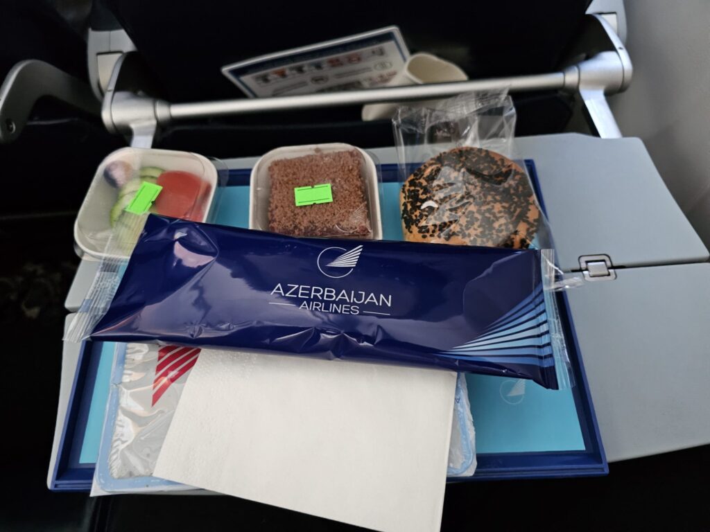 Starting with the positives, considering the duration of the flight, Azerbaijan Airlines left me impressed with their full meal, whilst despite its worn and battered condition, I was very pleased with the space and comfort afforded by the seat. However, I can’t say that the meal was particularly delicious, and for the most part, I found the crew to be cold and distant, having very minimal interactions with passengers throughout the flight.