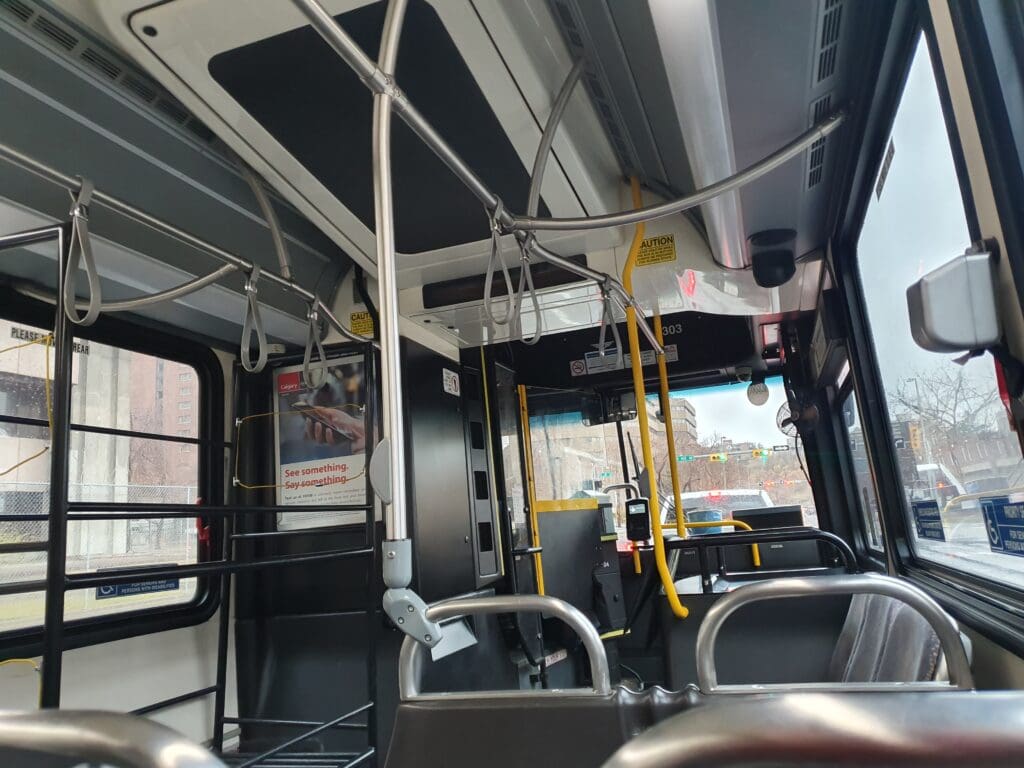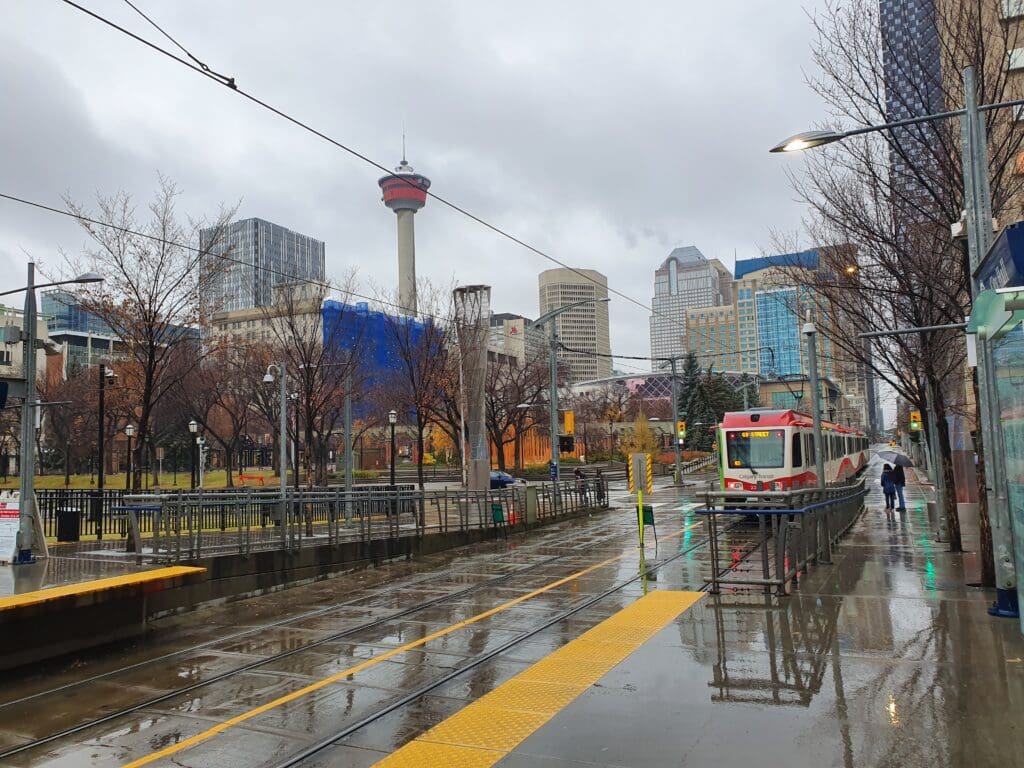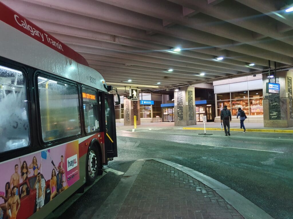 Admittedly, I hadn’t chosen the very best accommodation in Calgary. It was, from a Brit’s perspective, a typical North American roadside motel and the sort of place you might expect to see on an episode of Cops! Thus, not wanting to spend more time there than necessary, at 1000, I handed over my key and made a quick dash through the rain before arriving at Banff Trail Station. Once there I parted with $11 for a day pass and a short time later, one of CTrain’s modern Siemens S200 light rail vehicles rattled into the station. Jumping onboard, I was whisked downhill towards the Bow River and after a few stops, we crossed over the waters of this and made our way into the streets of Downtown Calgary. Heading directly to the airport, I disembarked at City Hall Station and followed the signs for the Number 300 bus. Calgary International Airport sits around 17 kilometres to the north of the city centre, and just one bus route connects the centre with the airport and runs and intervals of every thirty minutes. Considering that Calgary International Airport is the fourth busiest in Canada and enjoys a plethora of direct flights to destinations both near and far, the airport is not particularly well connected to the city by public transport. Thankfully, that morning I had timed things just right and I did not have to wait too long before the next bus appeared. Boarding this along with a few other suitcase-wielding passengers and airport staff, we soon trundled out of the centre, speeding over the Bow River before wending our way through Calgarian suburbia.