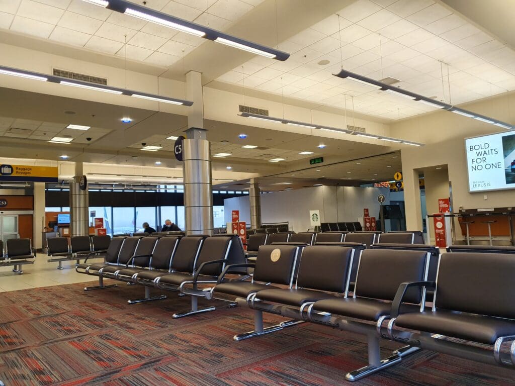 Airside, Calgary Airport features a total of five concourses, each of which is located some distance away from one another however the YYC Link, a shuttle service operated by a passenger transporter buggy does run between these. Following a quick doughnut and coffee stop at the local Tim Hortons, I explored the terminal. Inside, regardless of which pier you find yourself on, each features a decent selection of facilities to pass the time, including shops, cafes and restaurants. Whilst the D pier is the newest and most modern of Calgary Airport’s piers, other parts of the terminal appeared to be a mishmash of new and old, however even those older parts of the terminal were comfortable, clean and in good condition. Complimentary fast wifi is provided throughout the terminal and those looking to charge their devices will likely have no issue finding USB-A ports and plug sockets. Finally, for aviation enthusiasts, large windows offer unobstructed views of the apron outside and thus there are plenty of spotting and photography opportunities.