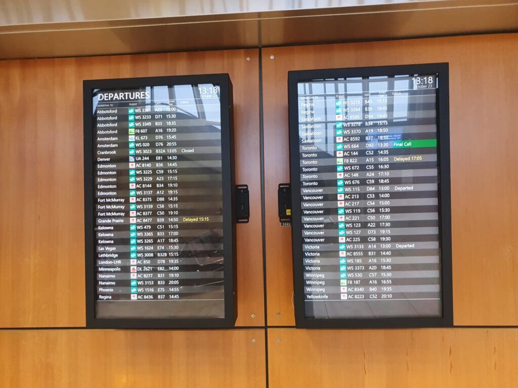 Following an uneventful journey, around thirty minutes after departing the city centre, the hangars of the airport appeared and the bus soon came to a halt at a stand outside the domestic arrivals hall. Entering this, as I had spotted in a few other Canadian airports, but is rare back home in Europe, the domestic baggage claim halls were located in the landside area and thus fully accessible to the non-travelling public. Whilst I’m sure that this area is well CCTV’ed up, I still can’t ignore the increased risk of baggage theft that this layout allows.