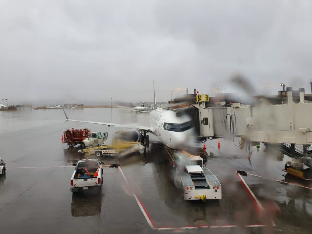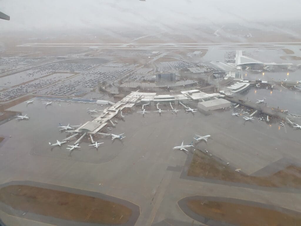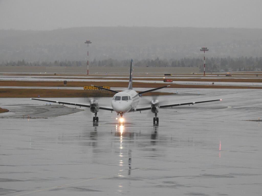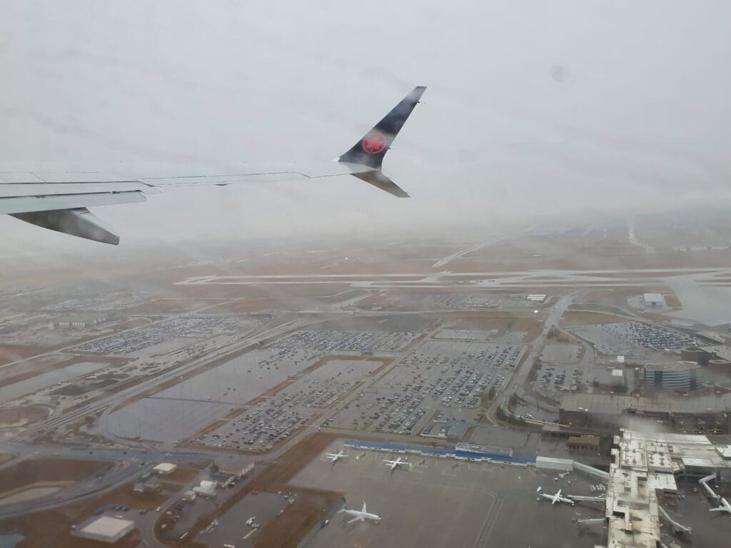 As soon as the aircraft came to a halt, the Boeing’s two modern CFM International LEAP-1B engines began to whine into life and the flaps were partially extended. At 1456, the aircraft commenced its very quiet taxi over to Runway 35L, during which thanks to the raindrop-filled windows, little could be seen of the sights that we passed on our way to the runway. As the aircraft journeyed across the airport, the crew passed through the cabin ensuring that all was in place for our departure, thankfully for them, they appeared to have little work to do thanks to the rule-adhering passengers. After coming to a quick halt to allow a Cessna Citation to land, the MAX taxied onto one of Calgary’s four runways and came to another stop to allow the Cessna to vacate this. Moments later, the Boeing commenced a long, gentle and quiet takeoff roll during which a fine selection of interesting aircraft could be seen. These included a Basler BT-67, Jetstream 31/32s, several Twin Otters and a BAe 146 (or Avro RJ). Eventually, the aircraft rotated into the sky and the entirety of the terminal could soon be seen through the gloomy mist for a few moments before the aircraft rose into the clouds.