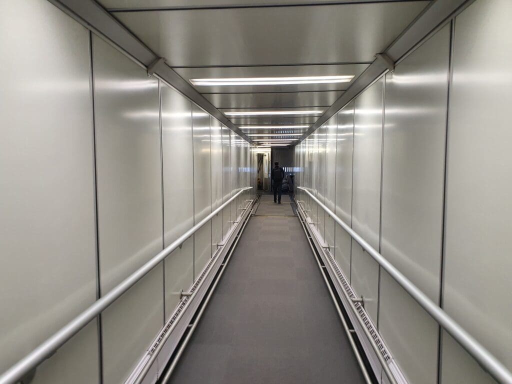 As the scheduled boarding time of 1425 approached, Air Canada’s automated pre-boarding announcement played out from the gate podium, advising passengers that boarding would be undertaken according to the zones listed on passengers’ boarding passes. With almost no passengers boarding when Zones 1 and 2 were called forward, falling into Zone 3, I headed forward to the gate podium around five minutes after the commencement of boarding. In the usual manner, I made a quick walk down the jetway towards the waiting aircraft and for the first time in my life, I stepped into the forward galley of a Boeing 737 MAX. There, one of the four flight attendants onboard the aircraft could be seen standing, however understandably, seeing as they were in the middle of an announcement, no greeting was given.