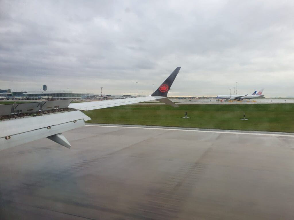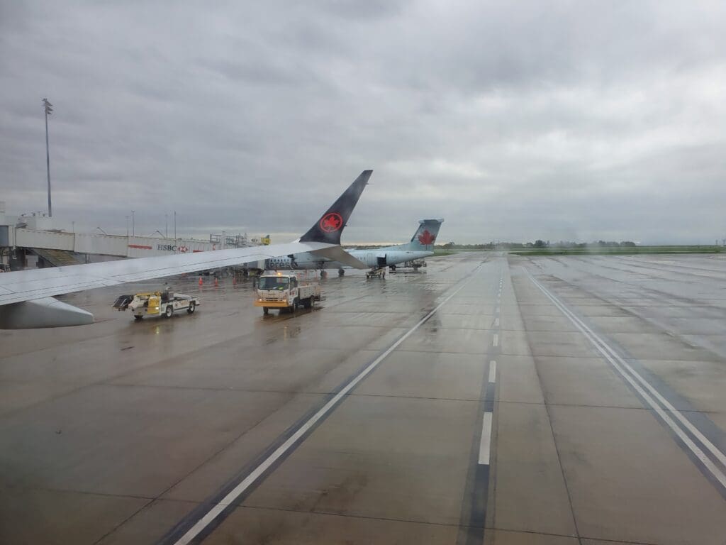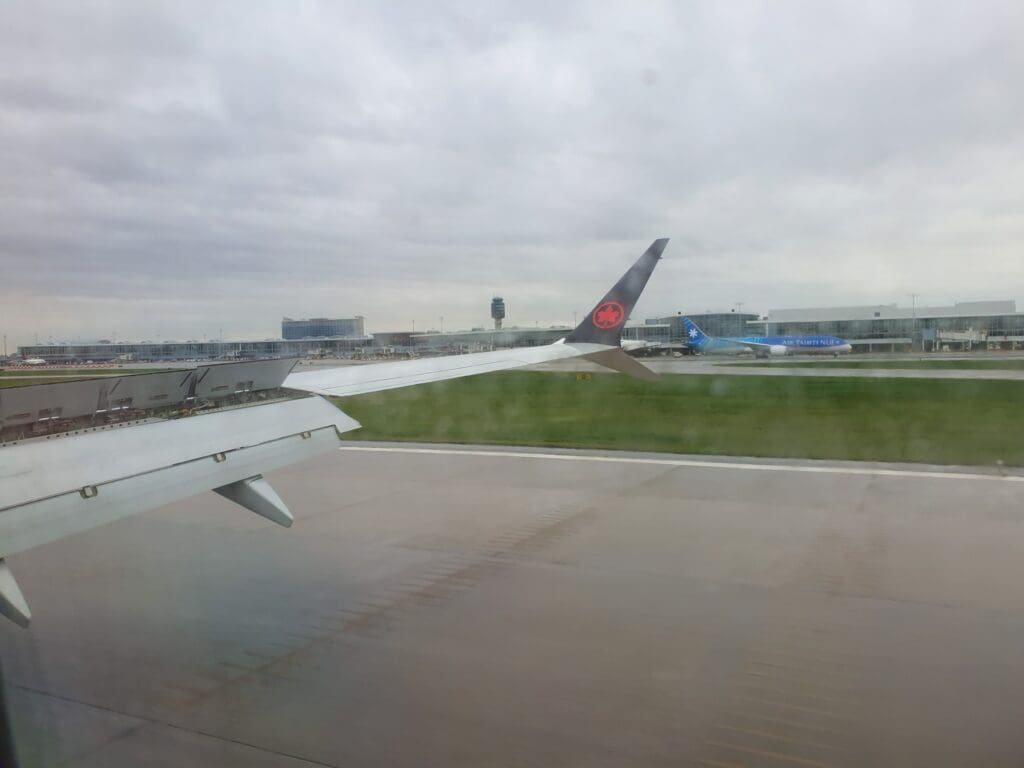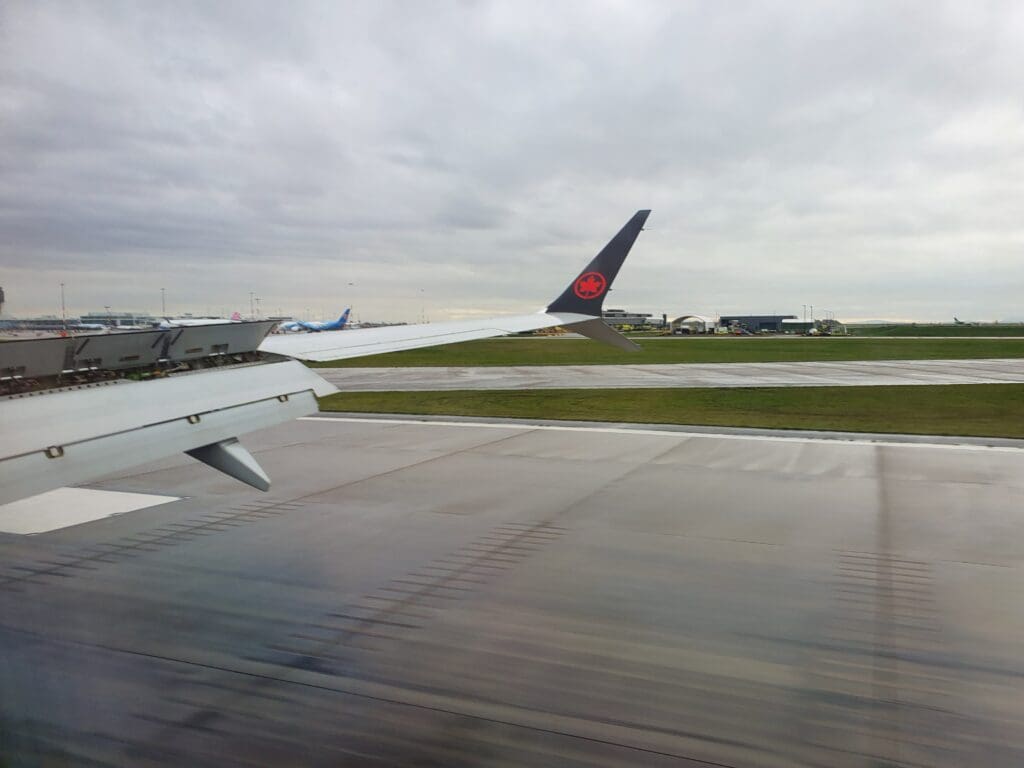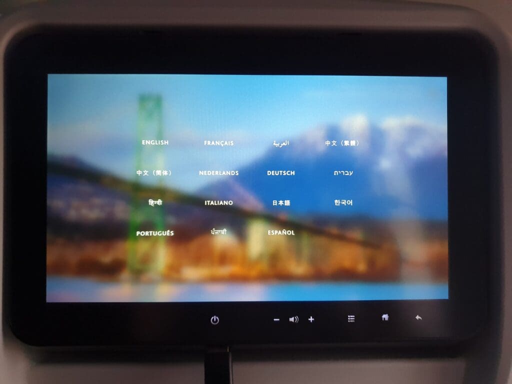 That afternoon, boarding was a fairly quick process and at 1442, the words ‘boarding complete’ rang out through the cabin. At this time I was delighted to see that the two seats next to mine remained empty and I would estimate the aircraft to have been around 70% full. Examining the demographics of the flight, this appeared to be a reasonable mixture of solo flyers, families and friends, as well as several deadheading crew members making their way to and from work. After a couple of minutes, the lights were dimmed and the Cabin Director performed a somewhat unenthusiastic-sounding welcome announcement in English and French. This featured the usual welcome and word of thanks for flying Air Canada, as well as the instructions regarding seatbelts and facemasks. As soon as the announcement came to an end, the inflight entertainment system temporarily became unusable as the airline’s Ode to Canada safety video was played. During this, an impressive eleven minutes ahead of schedule, the aircraft could be felt being pushed back away from the terminal.