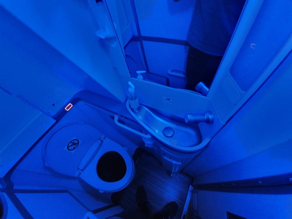 As with many other Boeing 737s, Air Canada’s Boeing 737 MAX 8 aircraft feature a total of three lavatories. One of these is located at the front of the aircraft and reserved for those in Business, whilst those in Economy can utilise the two that are squeezed into a corner of the rear galley. In terms of size, Boeing appears to have taken inspiration from the Airbus A320neo’s lavatories and upon opening the door I found this to be miniscule. Nevertheless, this appeared to be relatively clean, served its purpose and was stocked with all the basics that one would expect to find inside an aircraft lavatory.