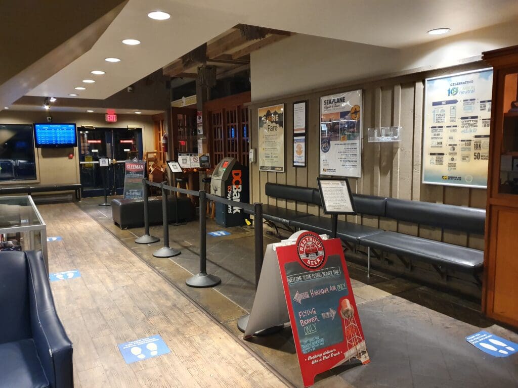Upon entering the terminal, I was presented with a small yet homely and comfortable-looking waiting area. There, passengers could wait for their flights in well-padded leather chairs and sofas, or admire the cornucopia of information boards, photographs and other pieces of memorabilia related to Harbour Air and its history. The terminal is also home to the suitably named Flying Beaver Bar and Grill, a popular spot amongst passengers and non-passengers alike, however, with this not opening until 0900, I wouldn’t get the opportunity to sample some of their highly rated cuisine that morning. On the far side of the waiting area, a short line of check-in desks could be seen, which were still in the process of being opened up. On a side note, a good selection of Harbour Air souvenirs was also on display in the terminal and could be purchased from the check-in agents.