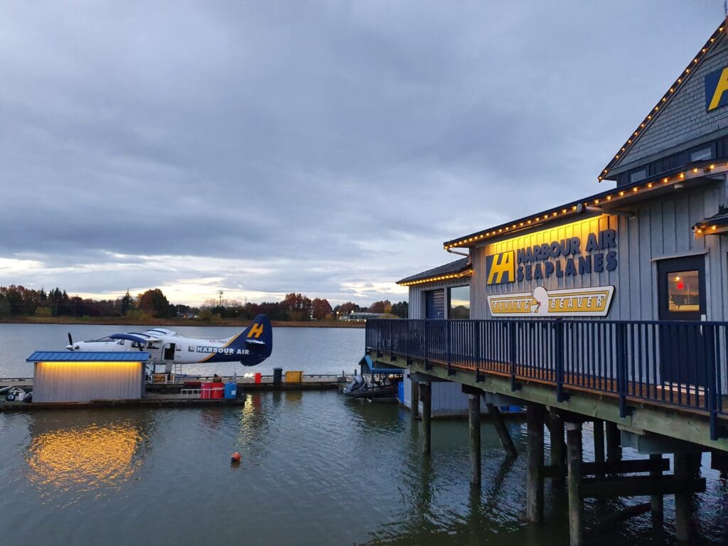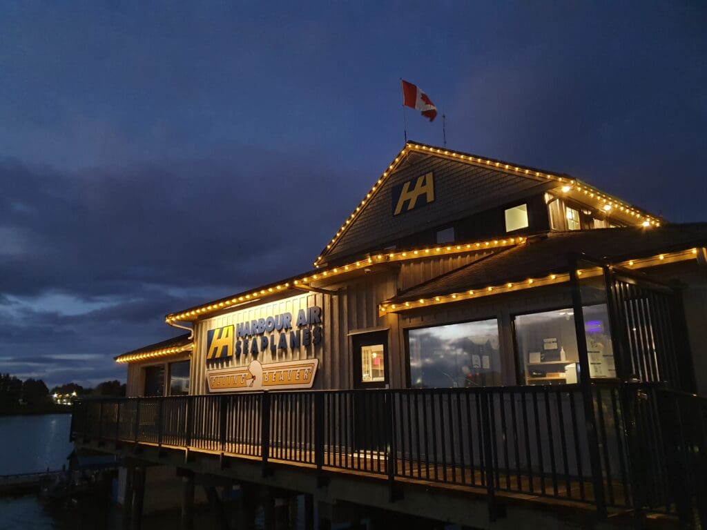 Seeing as Harbour Air’s Richmond terminal does not open up until 0700, after disembarking the bus I decided to make a quick trip to the South Terminal’s viewing platform. From there a host of Pacific Coastal Airlines’ Beechcraft 1900 and Saab 340 aircraft could be seen being prepared for their morning missions to destinations across British Columbia. After a few minutes, I began the short four-minute walk down to Harbour Air’s terminal which is located on the shore of the Fraser River. During this short walk, I passed a selection of floatplanes outside the hangars of Harbour Air and Seair Seaplanes. Meanwhile, at this time the first of two Turbine Otters could be seen being towed across the road and into the Fraser River, ready to commence that day’s flying. For those travelling along Inglis Drive, Harbour Air’s terminal is impossible to miss – brightly lit up in the dark and sporting large Harbour Air Seaplanes titles, whilst the flags of British Columbia and Canada are proudly flown from the roof.