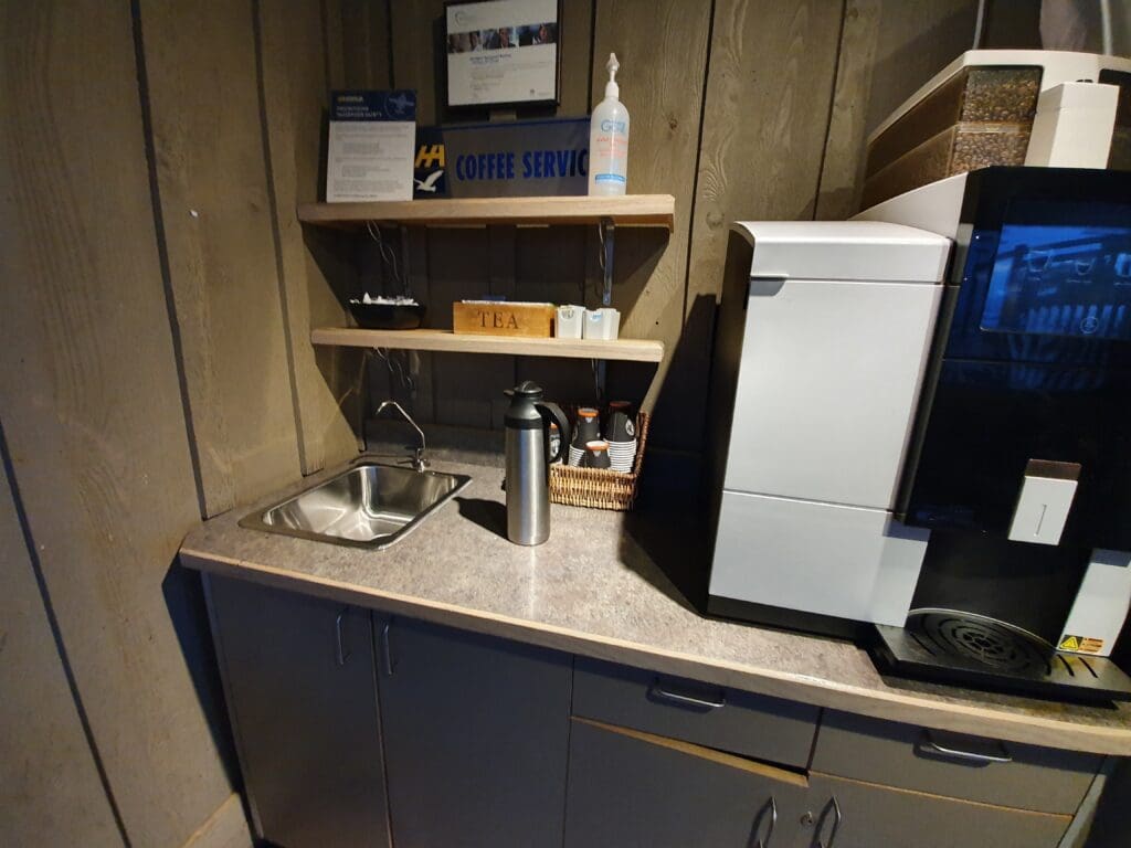 With around 45 minutes to go until departure, a single check-in counter opened for those heading off on Harbour Air’s morning flights. As I approached the counter I was given a warm greeting and asked for my name and some form of official identification. After handing over my passport, the check-in agent did some typing away before advising me that payment for the flight would then be taken from my card. Once done, my bag was weighed and tagged and I was asked whether I would like to check this in, rejecting their offer, I was then handed a yellow reusable laminated boarding pass and advised that boarding would commence just after 0800. Aside from comfortable seats, a nice aviation-oriented atmosphere, fast wifi and plug sockets, Harbour Air’s passengers are provided with complimentary coffee, tea, a plate of delicious biscuits and mints. Toilets are also offered although these are located in and shared with the neighbouring bar. Thankfully, with these having just been cleaned these were in a spotless condition.