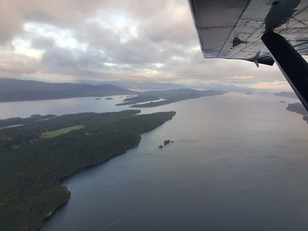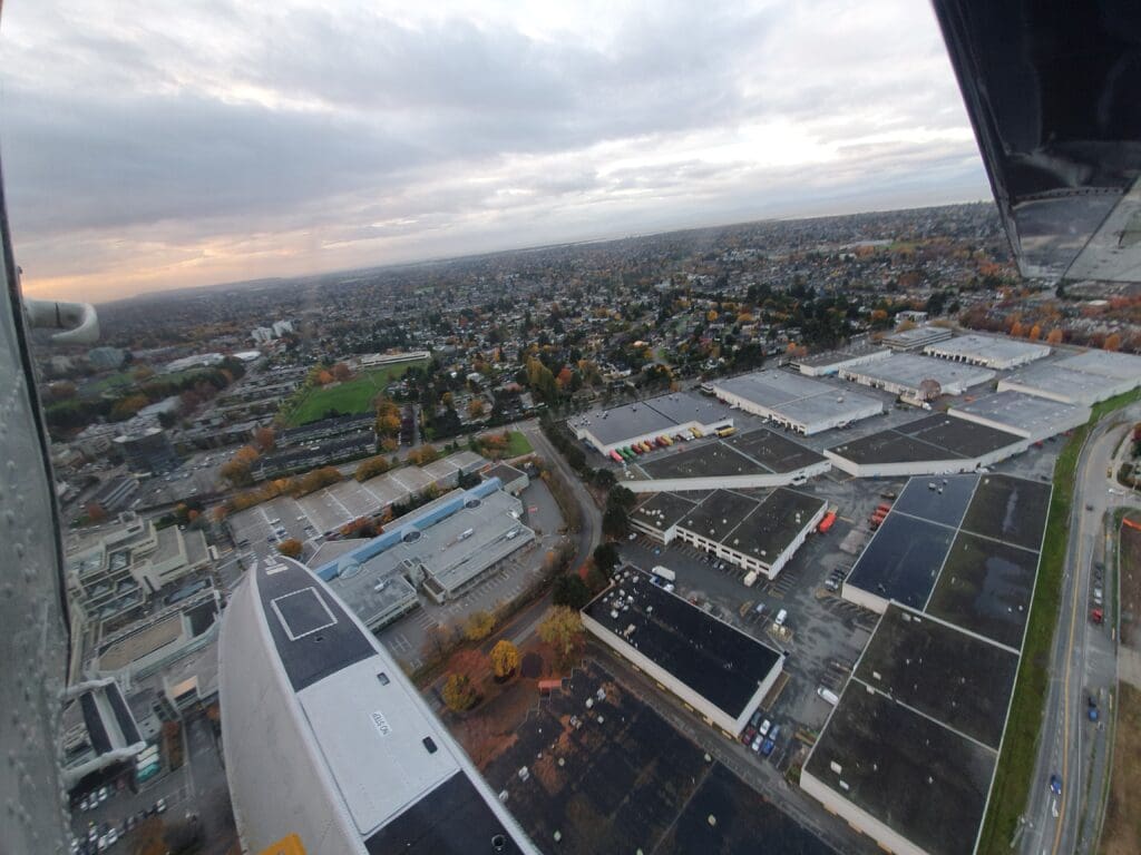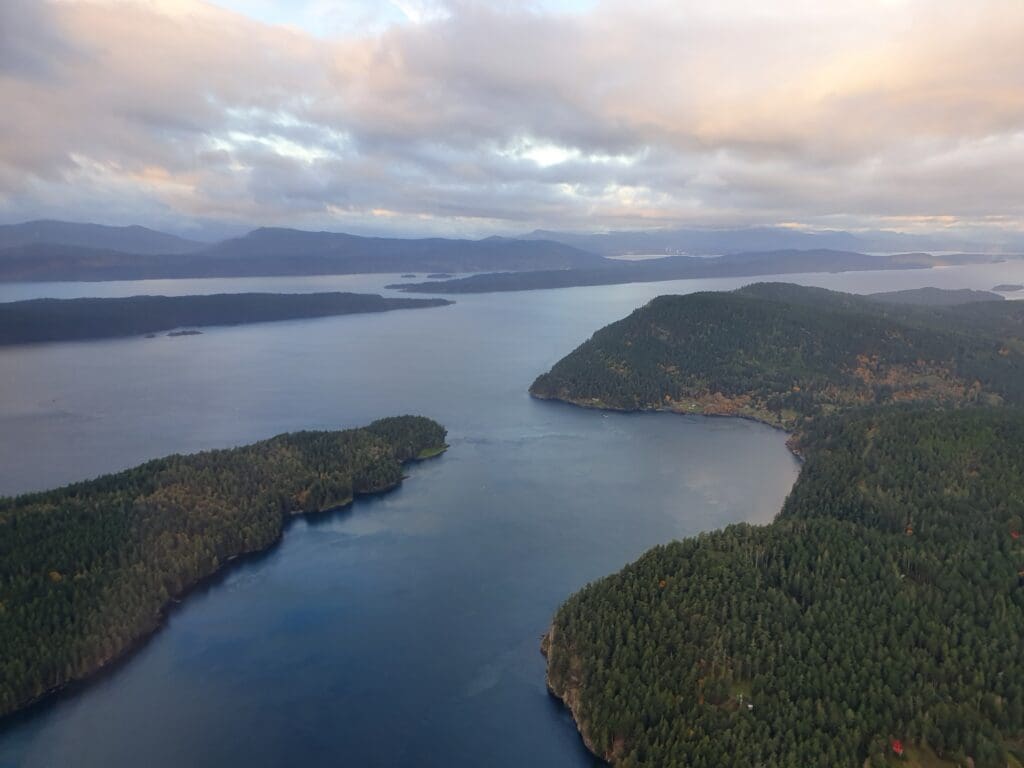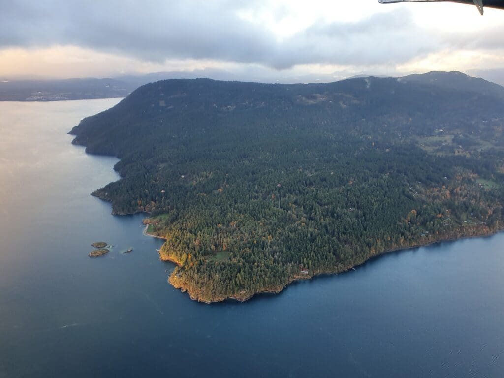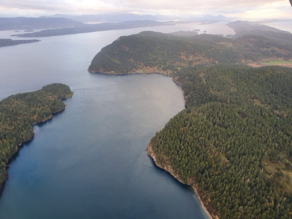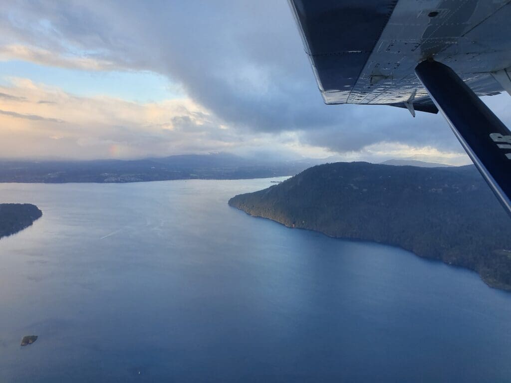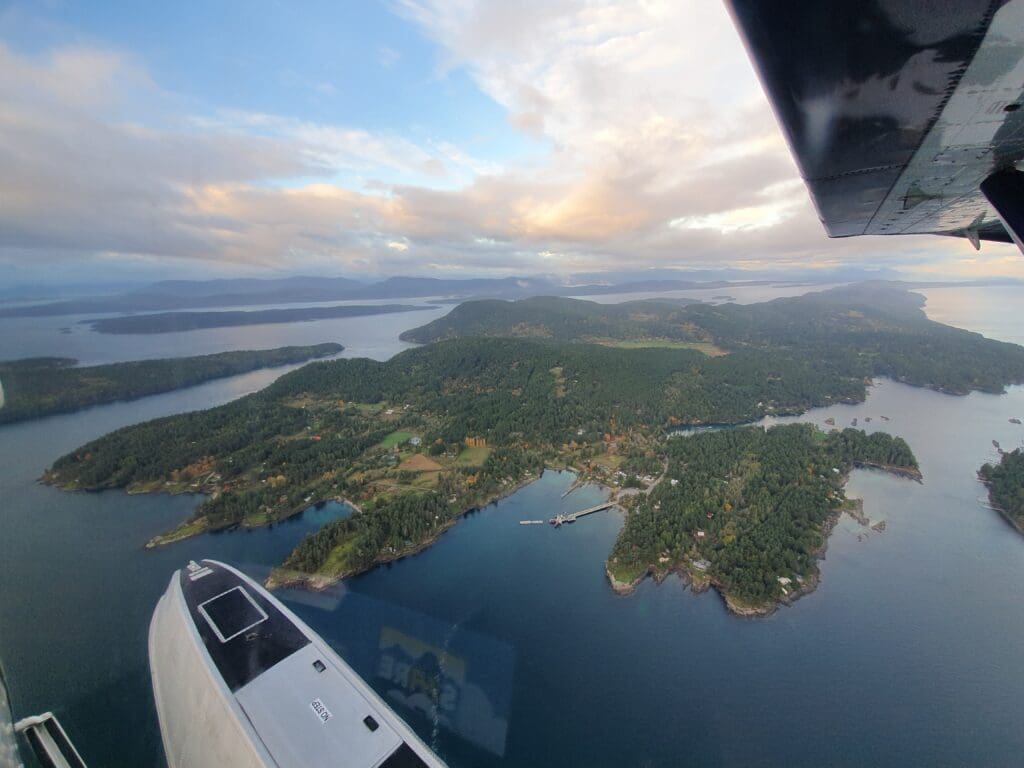 At 0816, the aircraft made its way onto the invisible water runway before the engine roared into life and the aircraft performed a surprisingly smooth and gentle takeoff roll along the water. Once in the skies, the aircraft skimmed just over the surface of the water for several seconds before pulling up and climbing over Richmond’s shoreline and passing over the Richmond Olympic Oval. Sitting on the right-hand side of the aircraft, during the first few minutes of the flight, I was offered views of the flat suburbs of Richmond as the aircraft cruised towards the coast. Heading south at 1,900 feet, three minutes after departure the aircraft passed over Steveston Harbour in southern Richmond and left the mainland behind, soon crossing Shady Island and Westham Island. Meanwhile, on the left-hand side of the aircraft, the Roberts Bank container port and Tsawwassen ferry terminal could be seen, along with the famous American territory of Point Roberts.