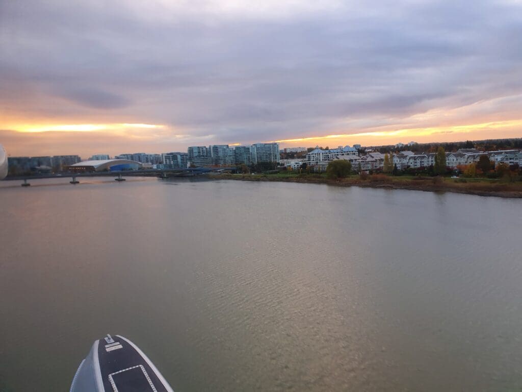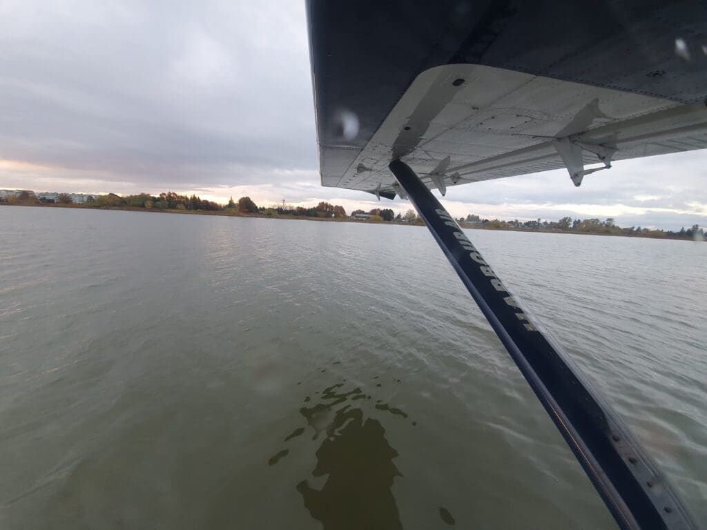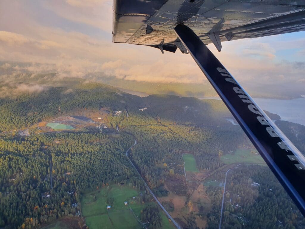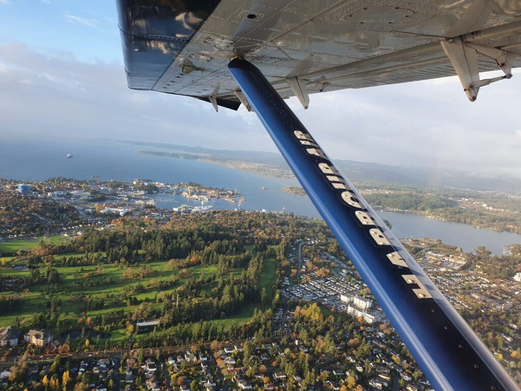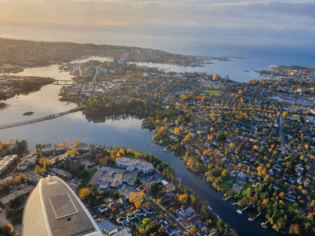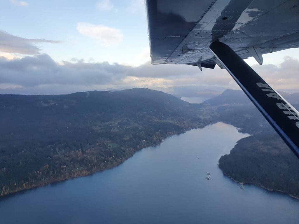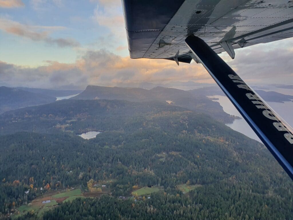At 0816, the aircraft made its way onto the invisible water runway before the engine roared into life and the aircraft performed a surprisingly smooth and gentle takeoff roll along the water. Once in the skies, the aircraft skimmed just over the surface of the water for several seconds before pulling up and climbing over Richmond’s shoreline and passing over the Richmond Olympic Oval. Sitting on the right-hand side of the aircraft, during the first few minutes of the flight, I was offered views of the flat suburbs of Richmond as the aircraft cruised towards the coast. Heading south at 1,900 feet, three minutes after departure the aircraft passed over Steveston Harbour in southern Richmond and left the mainland behind, soon crossing Shady Island and Westham Island. Meanwhile, on the left-hand side of the aircraft, the Roberts Bank container port and Tsawwassen ferry terminal could be seen, along with the famous American territory of Point Roberts.
