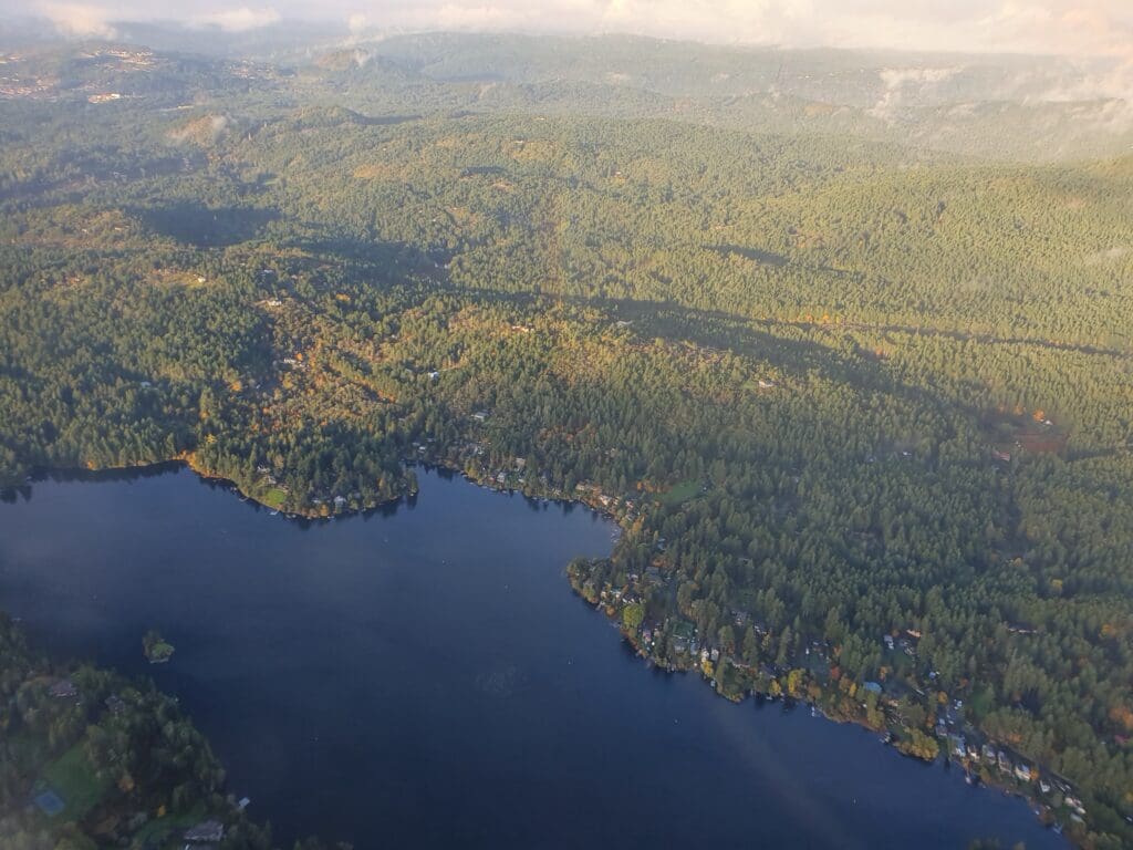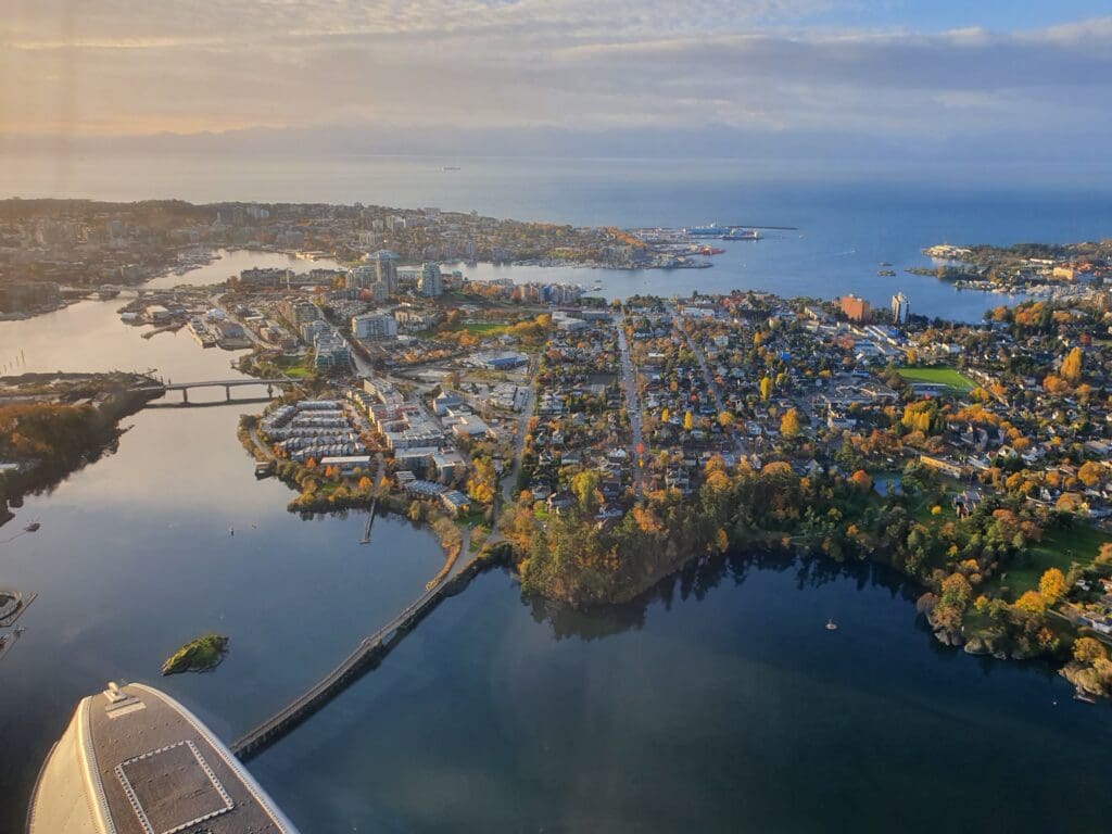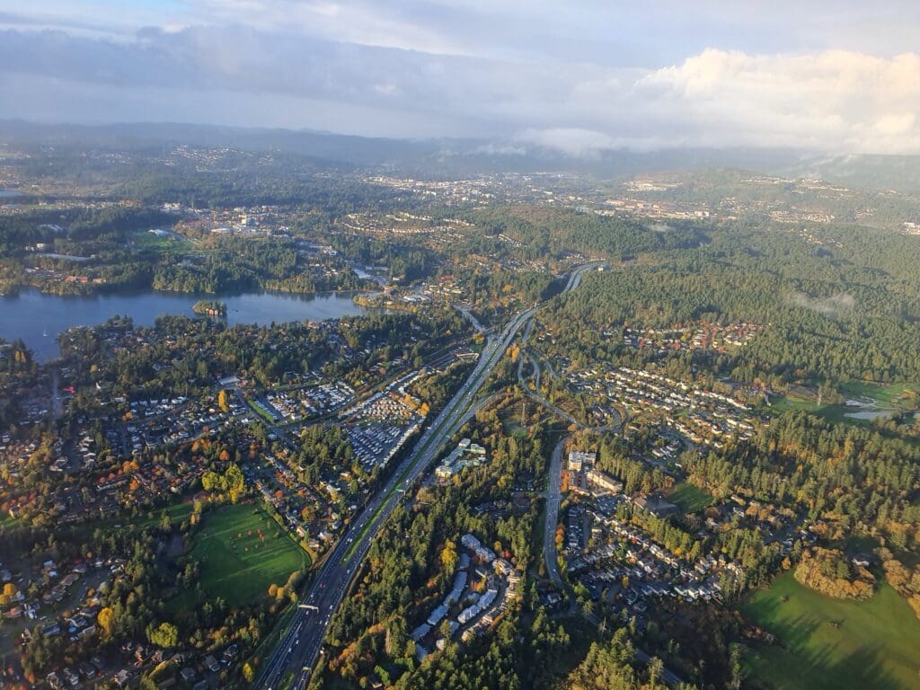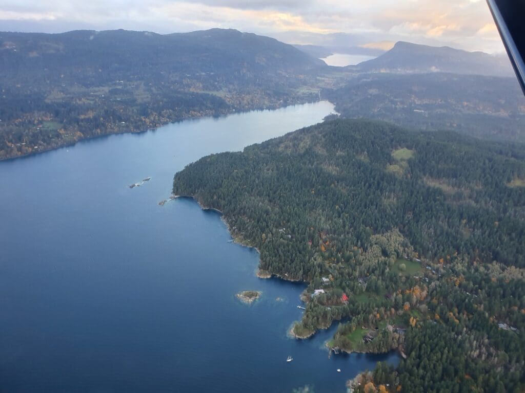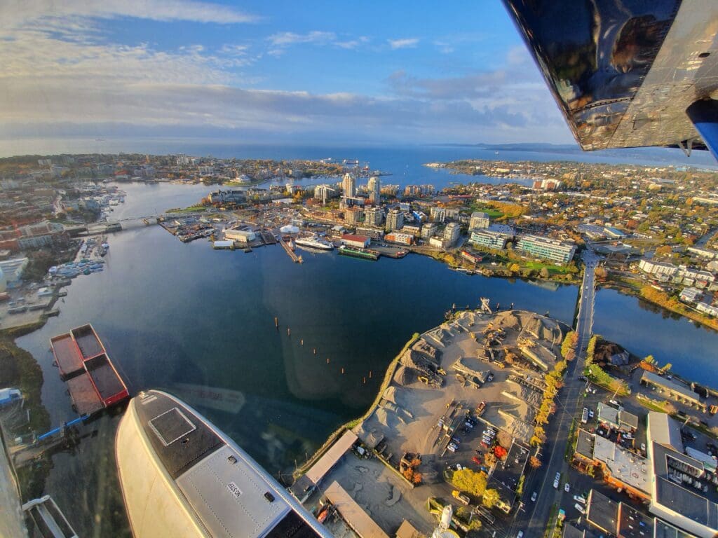 Heading over the Strait of Georgia, around ten minutes after leaving the coast behind the aircraft made landfall over the picturesque Galiano Island and for the remainder of the flight I was treated to superb views of the local landscapes as the Turbine Otter smoothly cruised towards Victoria at an altitude of 2,000 feet, with an airspeed of 115 knots, later rising up to 2,500 feet. From Galiano, the aircraft passed Prevost Island and then reached the much larger Salt Spring Island where the aircraft cruised over the southern portion of this, passing over the mouth of Fulford Harbour. Indicating that the short was nearing its end, the aircraft then reached Vancouver Island, making landfall just to the west of Swartz Bay before passing over Victoria Airport. Heading south the aircraft passed Brentwood Bay and continued over forests as the aircraft commenced its descent before Victoria appeared ahead.