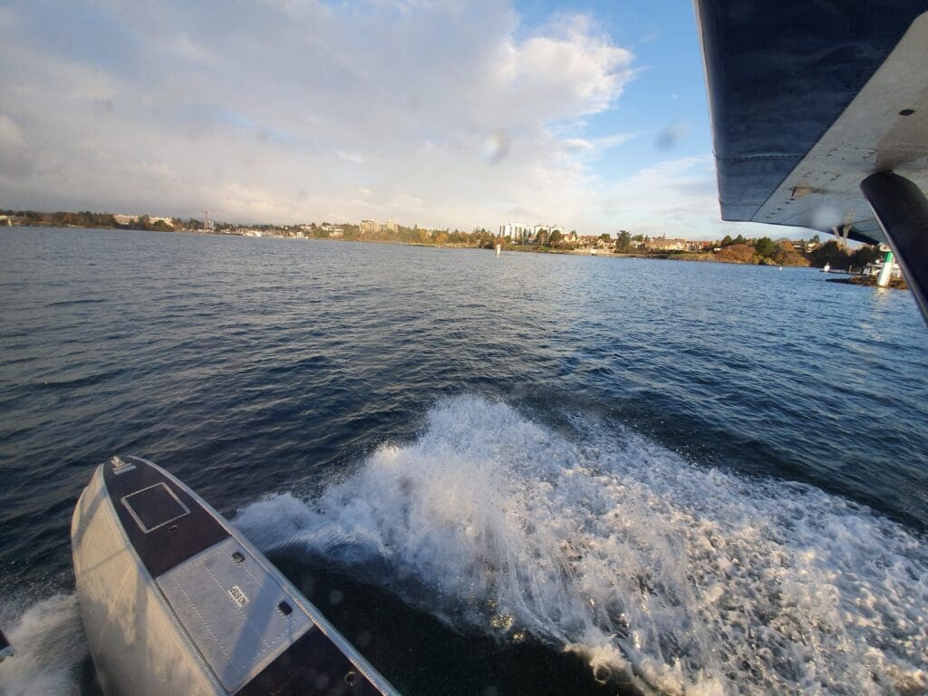 Once the safety video had reached its end, the pilot removed the iPad and placed it back into the cockpit, before wiping down the cockpit windows. A few moments later, the ropes holding the aircraft into position were removed and the Turbine Otter gently floated away from the pier. With a light wind blowing in from the east, that morning a fairly lengthy taxi would be in order along the shoreline before the aircraft could take to the skies. Once away from the pier, the Turbine Otter made its way past a Cessna 208 Caravan and de Havilland DHC-2 Otter, both operated by Seair Seaplanes. Ahead of us, the departure of the Nanaimo-bound Turbine Otter could be heard before a Harbour Air DHC-2 Otter touched down after a flight over from Salt Spring Island.