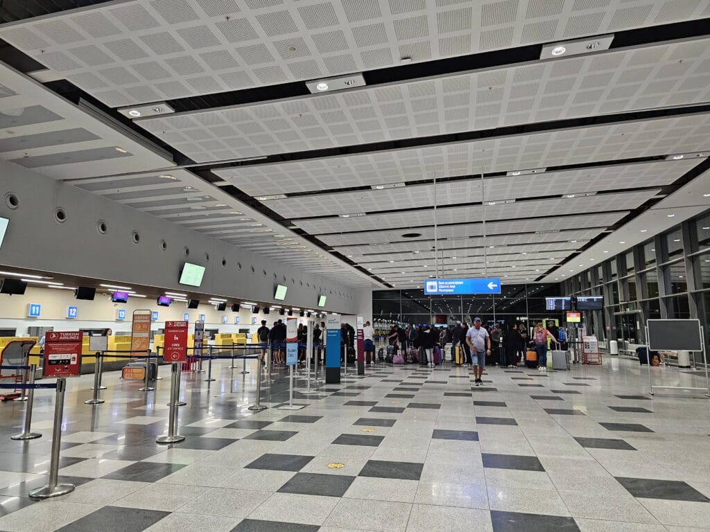 Whilst Varna Airport can trace its roots back more than a century, its current terminal building welcomed its first passengers in 2013 and remains modern in its appearance. On the outside, multicoloured slats hang down and provide passengers with a more colourful first impression of the airport than the many drab and characterless terminals that exist across Europe. Sitting outside of this, several benches and displays can be seen, creating a pleasant space to wait in good weather conditions. Heading inside, I soon found myself standing in the terminal’s check-in hall, which is complete with 25 desks. At that time, long queues could be seen leading up to those desks that had been assigned to Wizz Air’s early morning services to London Luton and Tel Aviv, and Enter Air’s flight to the Polish city of Katowice. For those like me who had arrived too early to check-in, plenty of benches could be found along the sides of the hall, however, fancying my first coffee of the day, I decided to make my way to the café which is located immediately after arrivals. Other than this café, a convenience-style store and a kiosk can be found, plus a currency exchange counter and a few ATMs.