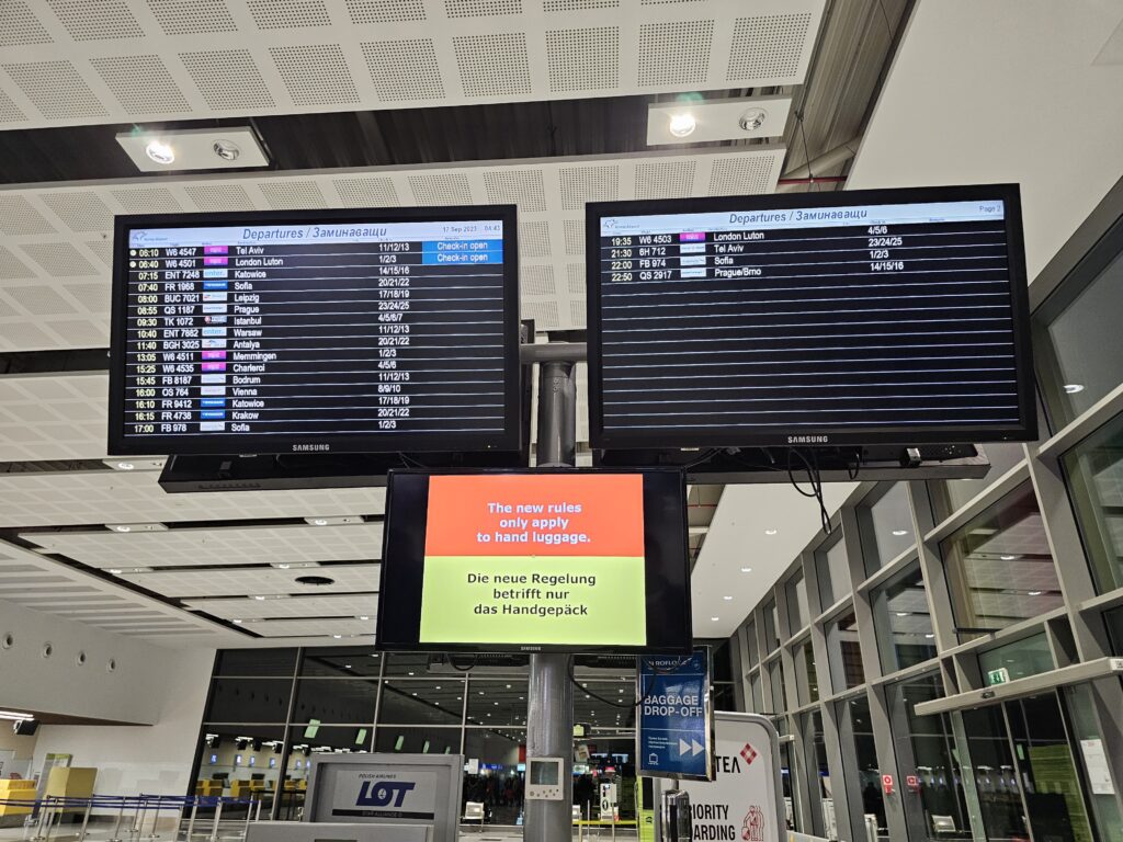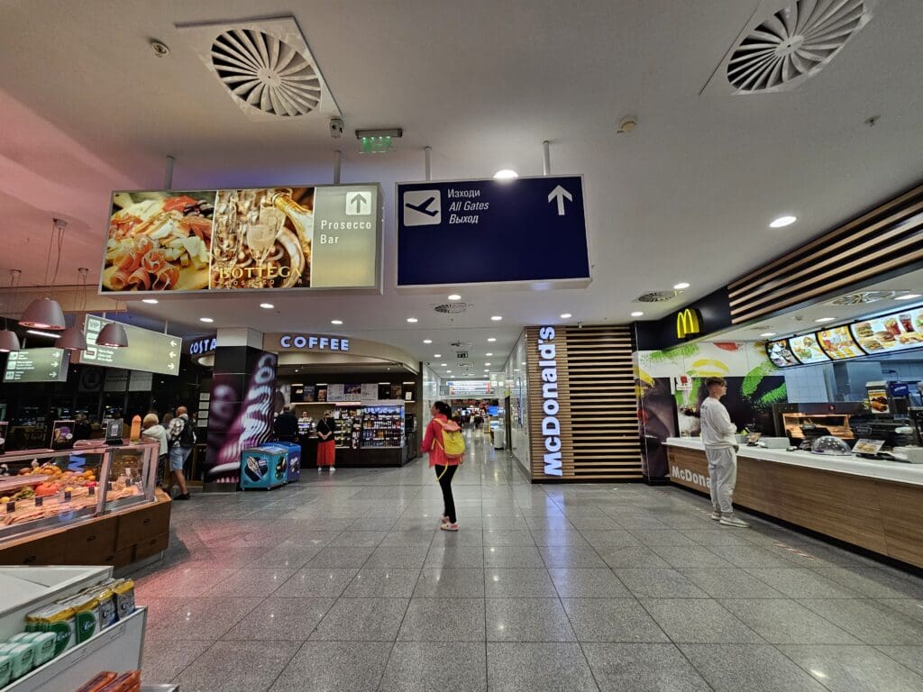 By the time I had checked in, the crowds of passengers heading off on the three earlier services had already passed through security, and thus nothing more than a short queue of about five passengers could be seen waiting to pass through this checkpoint. Whilst I imagine that the security area can get rather busy at peak times, that morning, this was as pleasant as a security check can be, and I passed through this quickly and without issue. Seeing as Bulgaria sits outside of the European Union’s Schengen area, all departing passengers bound for destinations abroad must pass through passport control, with a line of booths located immediately after security. Whilst only three of these were open, given the number of passengers there at the time, once again, this was no issue and no more than three minutes after I had been handed my boarding pass, I found myself standing in the airside portion of the terminal.