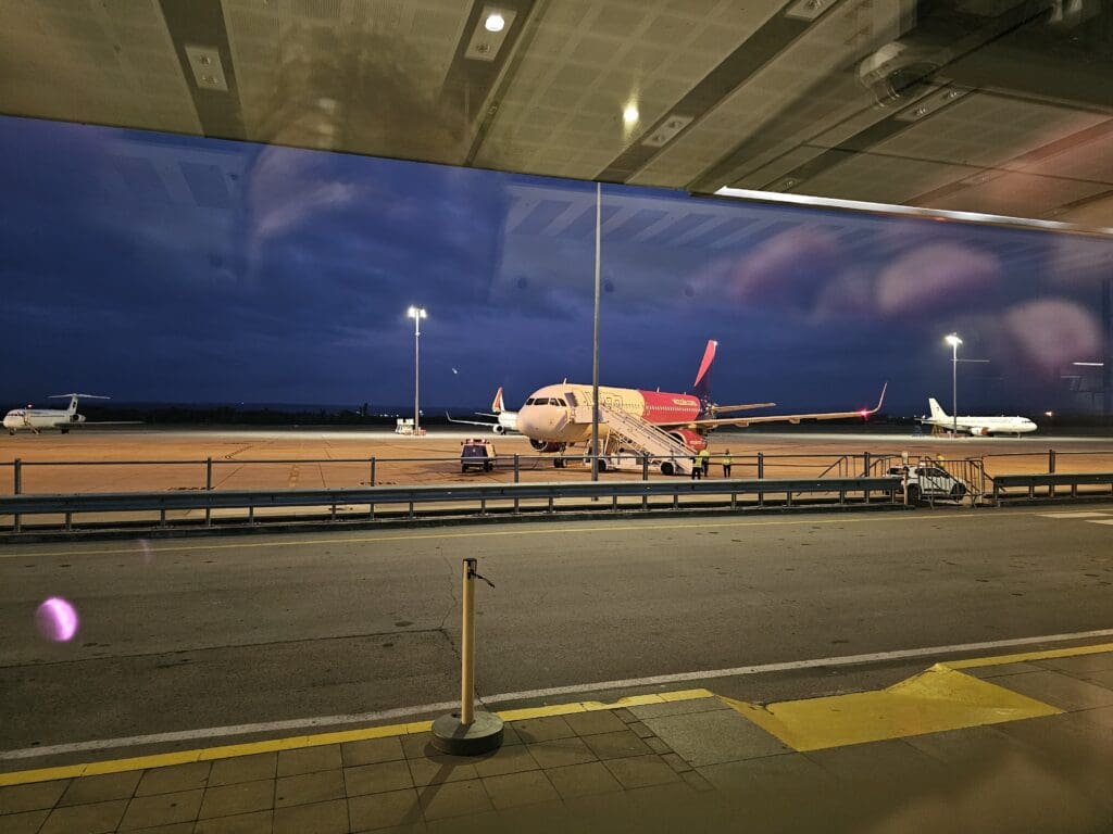 Outside, it wasn’t long before the skies slowly began to brighten in preparation for a new day and illuminated the smorgasbord of aircraft sitting outside. A short time after I had arrived in the airside area, Wizz Air’s two locally based Airbus A320s could be seen heading off into the dark morning skies. This was followed a short time later by Enter Air’s service to Katowice, which was operated by one of the carrier’s latest additions, a Boeing 737 MAX 8. In the distance, a line of five Bulgarian aircraft could be seen sitting at the remote stands. At one end stood two Airbus A320s operated by charter specialist Electra Airways, next to which was an all-white 31-year-old Boeing 737-300 operated by Bulgaria Air subsidiary Bul-Air. At the other end were two European Air Charter jets, an Airbus A320 that would fly empty down to Burgas before hopping over to Dusseldorf, and the iconic MD-80 that would be operating the Leipzig rotation. Contrary to what many would expect, this particular Airbus was older than the MD-80 by around three years! Other aircraft seen include a Buzz Boeing 737 MAX 8 operating Ryanair’s Sofia rotation and a Czech Gulfstream G550 operated by ABS Jets.