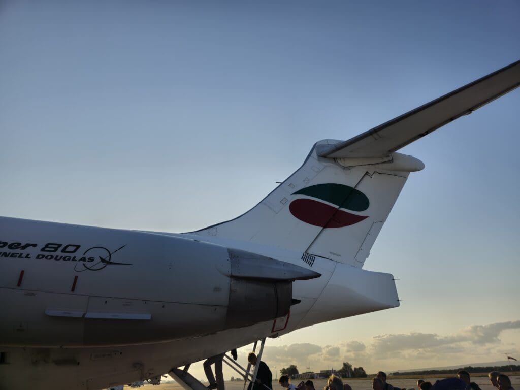 That morning, boarding for the service was scheduled to commence at 0720 and two minutes after this time, a white Cobus 3000 appeared outside, and the two gate agents took their positions behind the gate podiums. At that time, boarding commenced at which point a scrum of passengers formed leading up to the doors. Whilst I wouldn’t go as far as to say that boarding was disorganised, this was not preceded by any announcement, and there was no order to this, with all passengers invited to board at the same time. Following a short queue, I had my boarding pass scanned and my passport checked before I stepped onto the waiting bus. Once onboard, a few minutes of waiting was required whilst the agents squeezed as many people as physically possible onto the bus. At 0730, the doors closed and the bus jolted before cautiously and slowly making its way to the aircraft. Heading across the apron, the aircraft made its way around the Bul-Air Boeing 737-300 before coming to a halt near the MD-82’s port wingtip. However, after arriving there, the bus doors remained firmly shut for several minutes whilst those passengers requiring assistance boarded the aircraft by means of an ambulift.