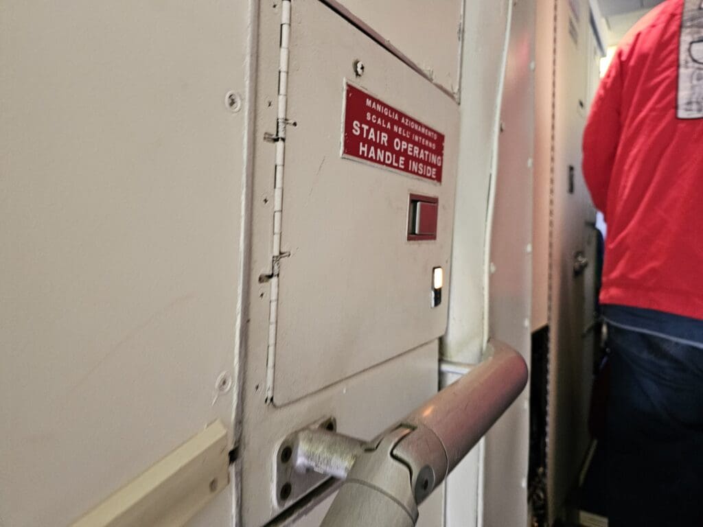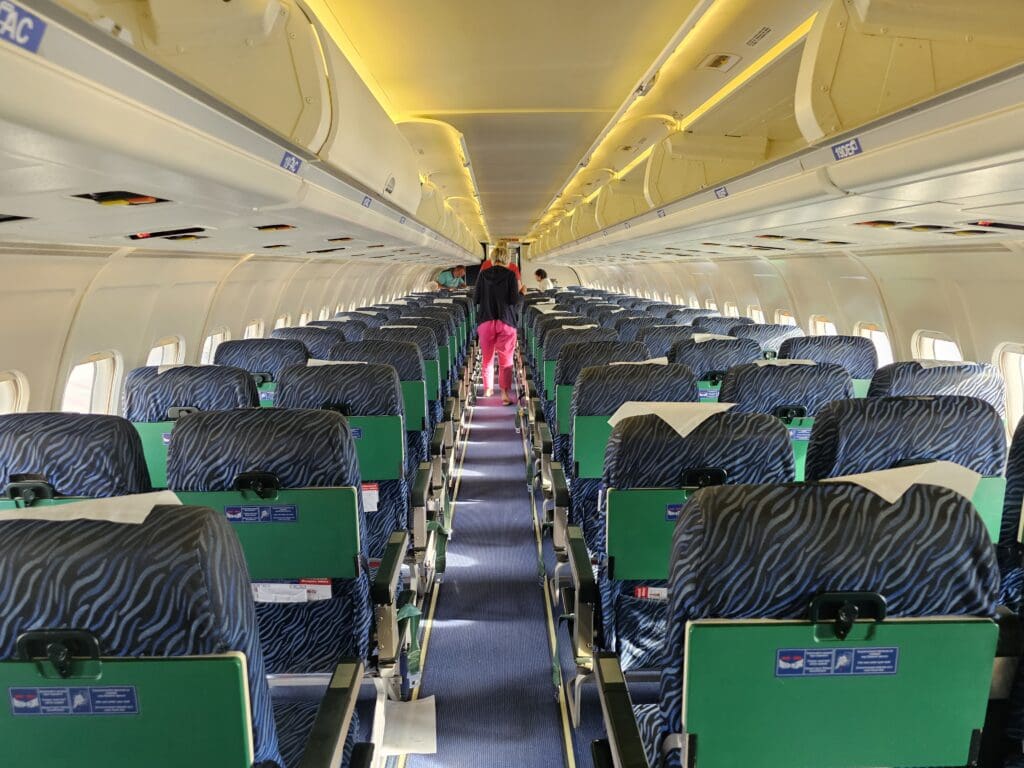 After several minutes, the doors slid open and passengers spilt out onto the apron. Seeking to streamline the boarding process, a member of ground staff stood just ahead of the leading edge of the wing holding two signs which advised passengers to board via the front or rear door, depending on their row number. As had been the case whilst boarding sistership LZ-LDJ in Rhodes for a flight to Linz almost exactly a year prior (you can read my review of this flight here!), whilst cones had been placed around the aircraft’s wing many passengers took a shortcut, passing directly beneath the relatively low wing. As a true enthusiast, after disembarking the bus, I held back slightly to take plenty of photos of the aircraft before eventually making my way towards the MD-82’s built-in steps at the rear of the aircraft. Following a short wait near the rear of the aircraft, I clambered up the steps and passed through the thick rear bulkhead door where I received a quiet and subdued ‘morgen’ greeting from one of the four flight attendants onboard the aircraft that morning.