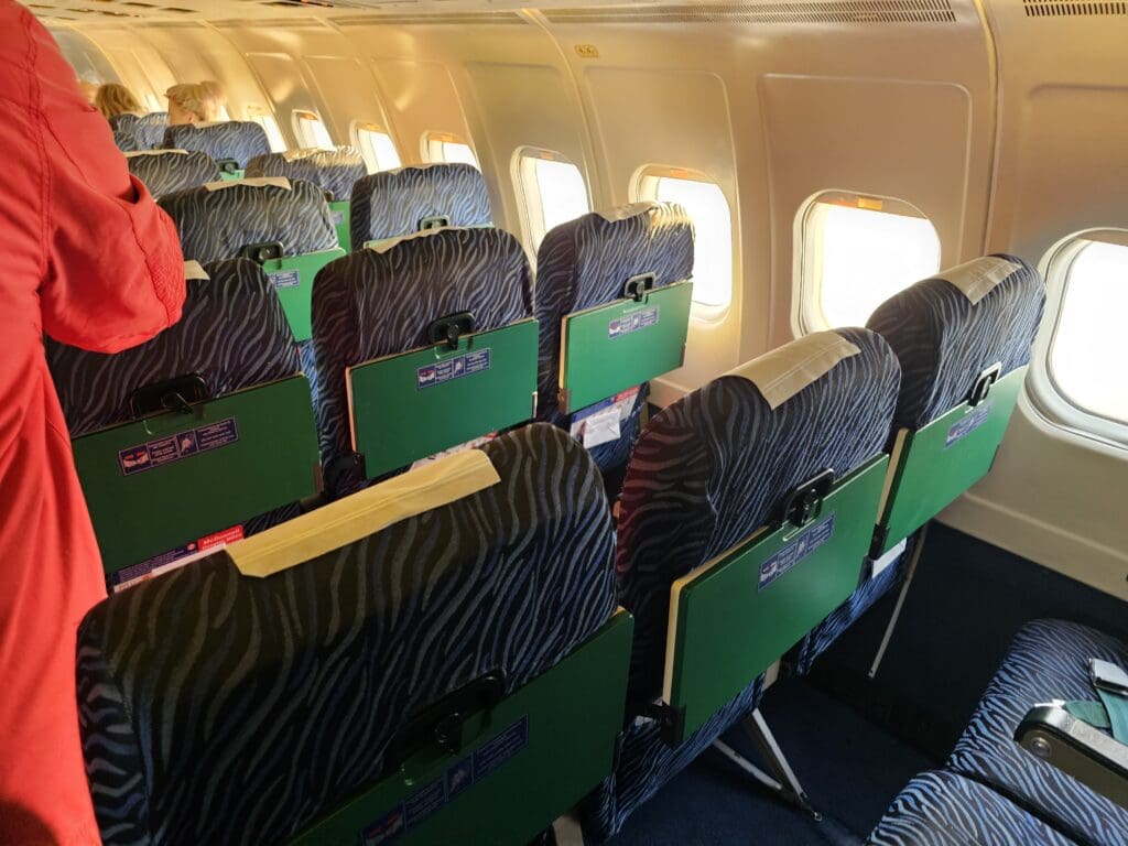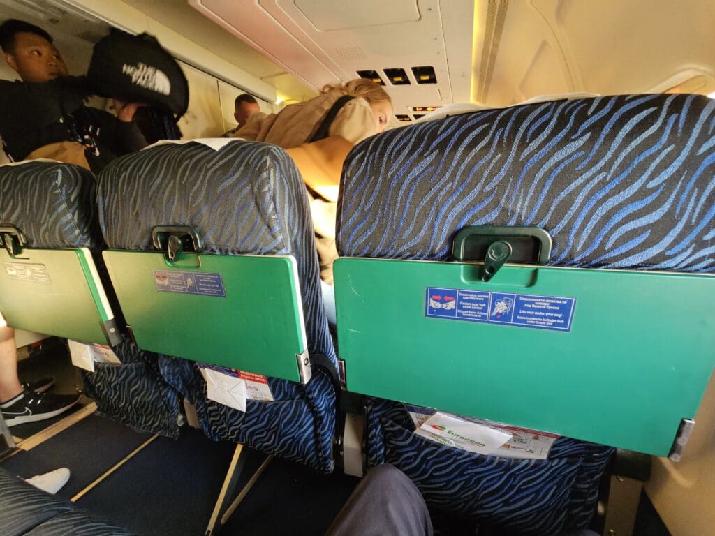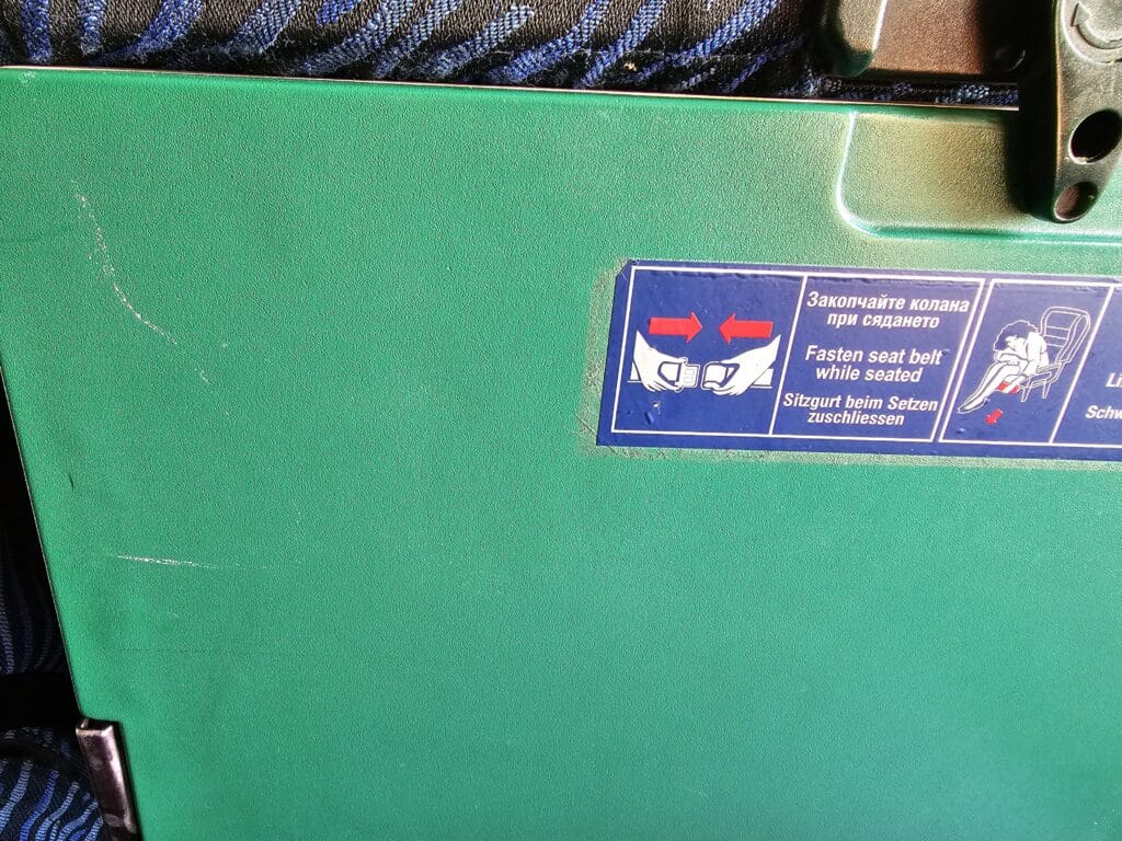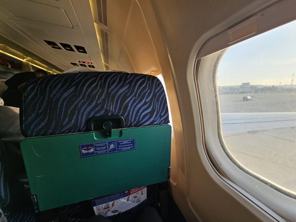 Seeing as I would be sitting in row 33 out of 36, I didn’t have far to walk until I reached my seat, which was located opposite the half-galley at the rear of the cabin. Looking around, in spite of the fact that LZ-LDM is relatively young for an MD-80, I found the cabin to be dated in its appearance. Giving some hope that I would be in for a comfortable ride, not a single slim lightweight seat could be seen, with each of the aircraft’s 164 seats coming in the form of well-padded and reclinable seats separated by chunky armrests capable of supporting the forearms of Bulgaria’s largest bodybuilders. Up above, clunky PSUs could be seen, whilst a mishmash of varying shades of yellow and orange beamed down from above.