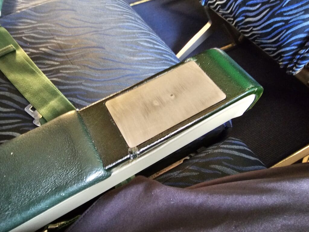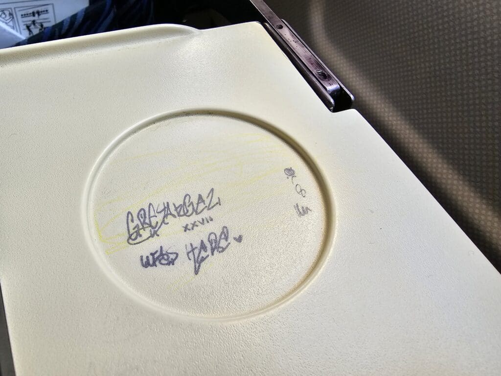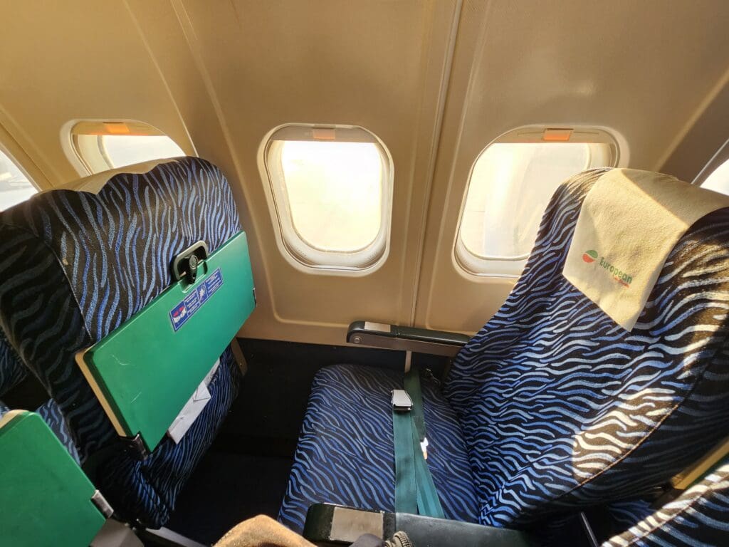 After storing my bag in the overhead locker, I slid into my seat and settled in for the ride over to Leipzig. As I had expected, I found the seat to be soft and comfortable and was also delighted to find that these provided a good amount of legroom. Furthermore, the cabin appeared to be in a spotless condition, although this was to be expected given the fact that the aircraft had not flown in almost 2 days. Taking into account the age of the aircraft, I wasn’t too surprised to encounter a fair number of marks and scratches in the area around my seat, although I was disappointed to find some unsightly graffiti on the tray table. Turning to the seatback pocket, this contained a copy of the aircraft’s safety card as well as a European Air Charter branded sick bag.