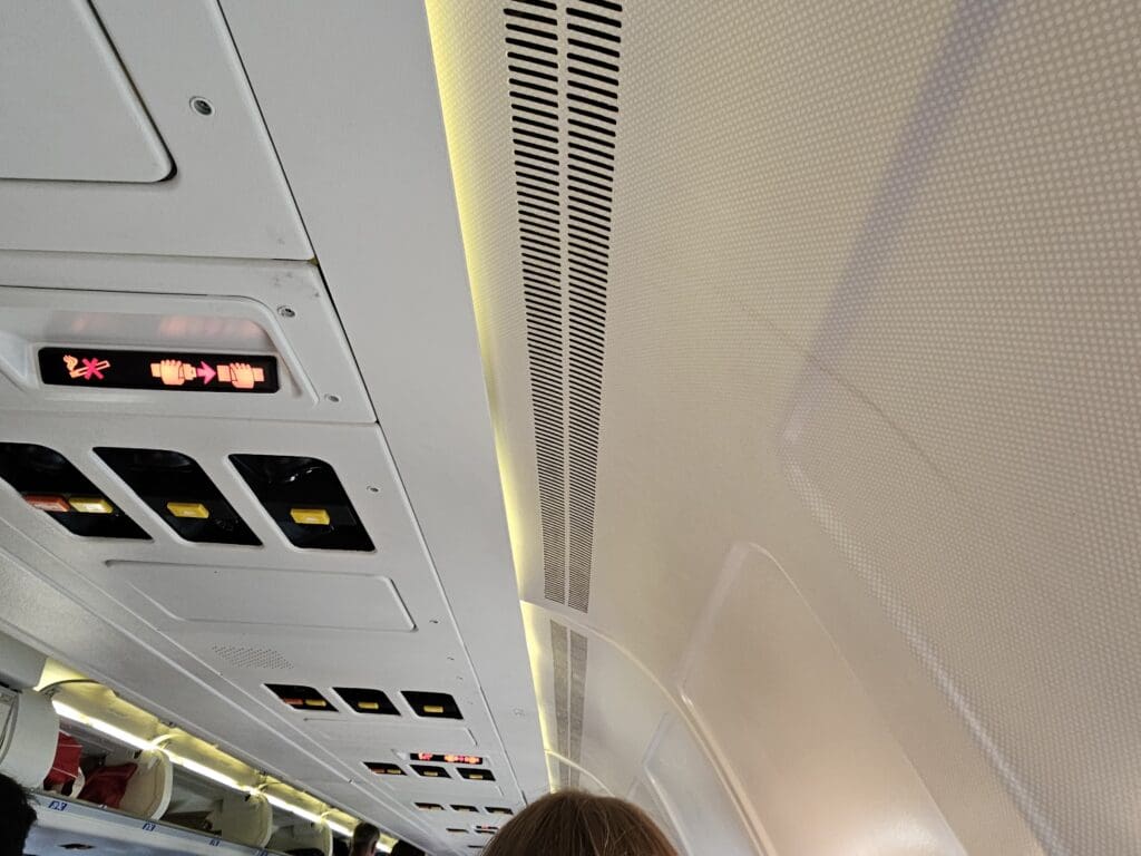 With the climb proving to be entirely turbulence-free, it wasn’t long before the seatbelt signs were extinguished at which point the crew performed an announcement in German regarding the soon-to-commence buy-on-board service before rolling out a cart to the front of the cabin. Unfortunately, no physical menu was offered for this service, although I later found a PDF version of European Air Charter’s website. Whilst the offerings were not as comprehensive as on many other low cost carriers, European Air Charter sells a fair selection of drinks and snacks, the most substantial of which came in the form of sandwiches, instant noodles, a pasta dish and tapas box. In terms of prices, these appeared to be very standard for a low-cost carrier, with an instant coffee coming in at an inflated €3.50, sandwiches at €5 and the tapas box or pasta dish at €7.50. Slightly disappointingly, unlike on my European Air Charter ride from Rhodes to Linz, no complimentary bottle of water was offered, although seeing as I wasn’t flying the carrier for their onboard service, I couldn’t really complain! With many passengers sleeping, the crew seemed to make minimal purchases and sped through the cabin in no more than four minutes.
