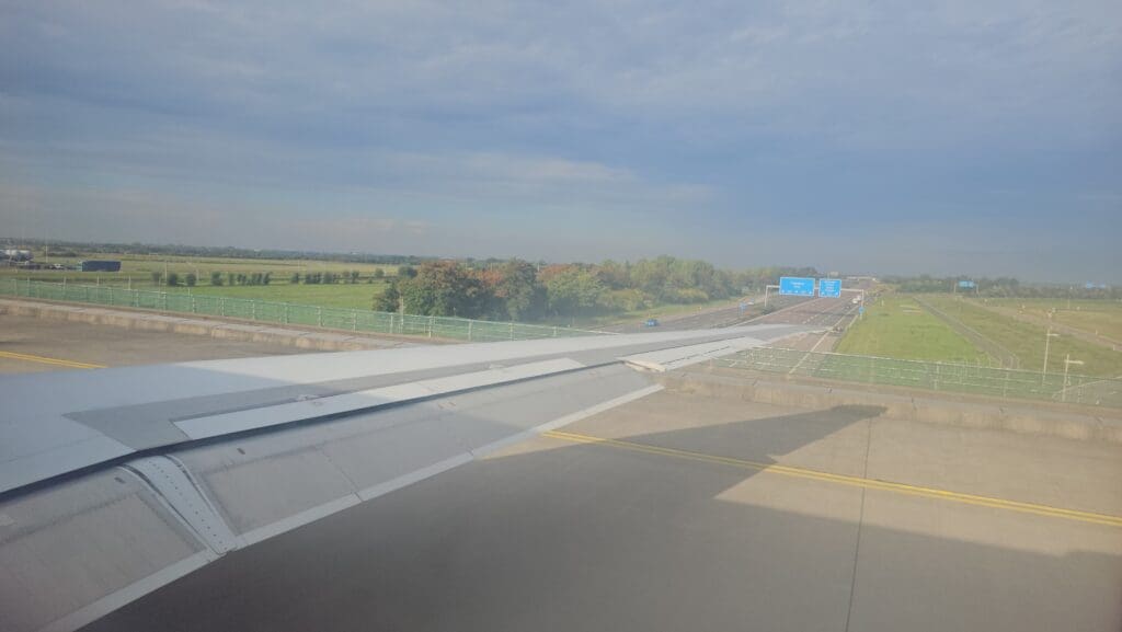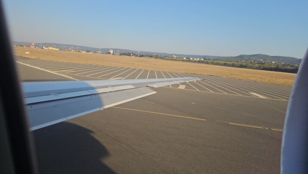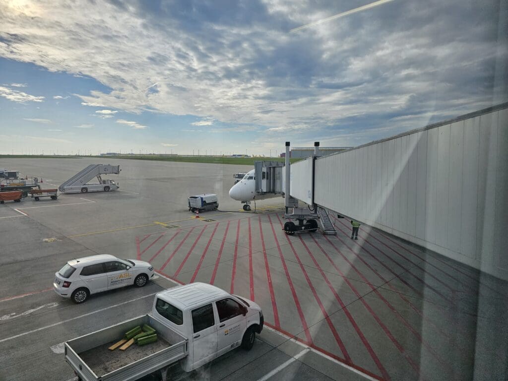 A little over two hours after rocketing upwards into the skies of Bulgaria, the MD-82 floated down over Leipzig Airport’s perimeter fence and at 0907 made a firm touchdown on Runway 26R. Almost immediately upon hitting the ground, a round of applause rang out through the cabin and the aircraft decelerated rather gently in an attempt to minimise taxi time. Once at the end of the 3.6 kilometre long runway, the aircraft vacated this to the left at which point one of the flight attendants performed the last announcement of the flight. Whilst unfortunately unable to speak Bulgarian or German, I assume this took the form of a welcome to Leipzig and a word of thanks for flying with European Air Charter and was met by another round of applause. Outside, once off the runway, the MD-82 made its way over a bridge that spans across one of Germany’s autobahns, followed in quick succession by another stretching across a railway line. Whilst not entirely uncommon in much of the world, taxiway bridges are somewhat of a novelty back home in the UK (the only real one I can think of is at Luton), and so this was an exciting way to end the journey!