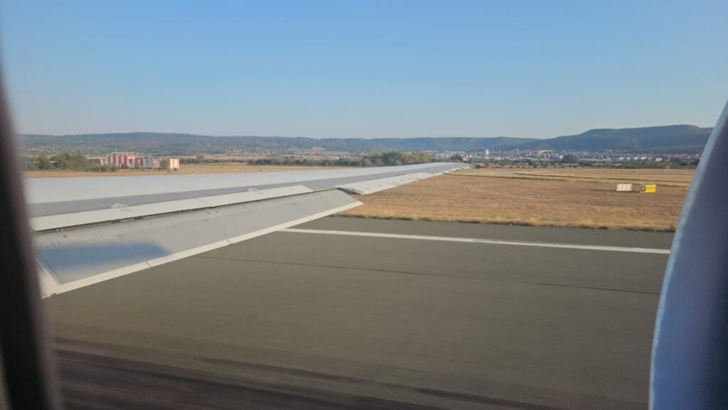 With Varna being far from Europe’s busiest airport, with nothing on approach and nothing ahead of us, once at the end of the runway no holding was required, and a grand total of four minutes after commencing our taxi, the aircraft made its way onto the runway. Without coming to a halt, the two JT8D engines roared and filled the cabin with noise as we began to accelerate down the runway. Sitting on the right-hand side of the aircraft, as we sped along, I was offered one last glimpse of the terminal as well as of the cluster of Airbus A320 family aircraft in varying states spread about the airport grounds. More interestingly, I also caught sight of a Tupolev Tu-154 that has been rotting away at the airport since it retired from Bulgarian carrier Air VIA in the early 2000s.