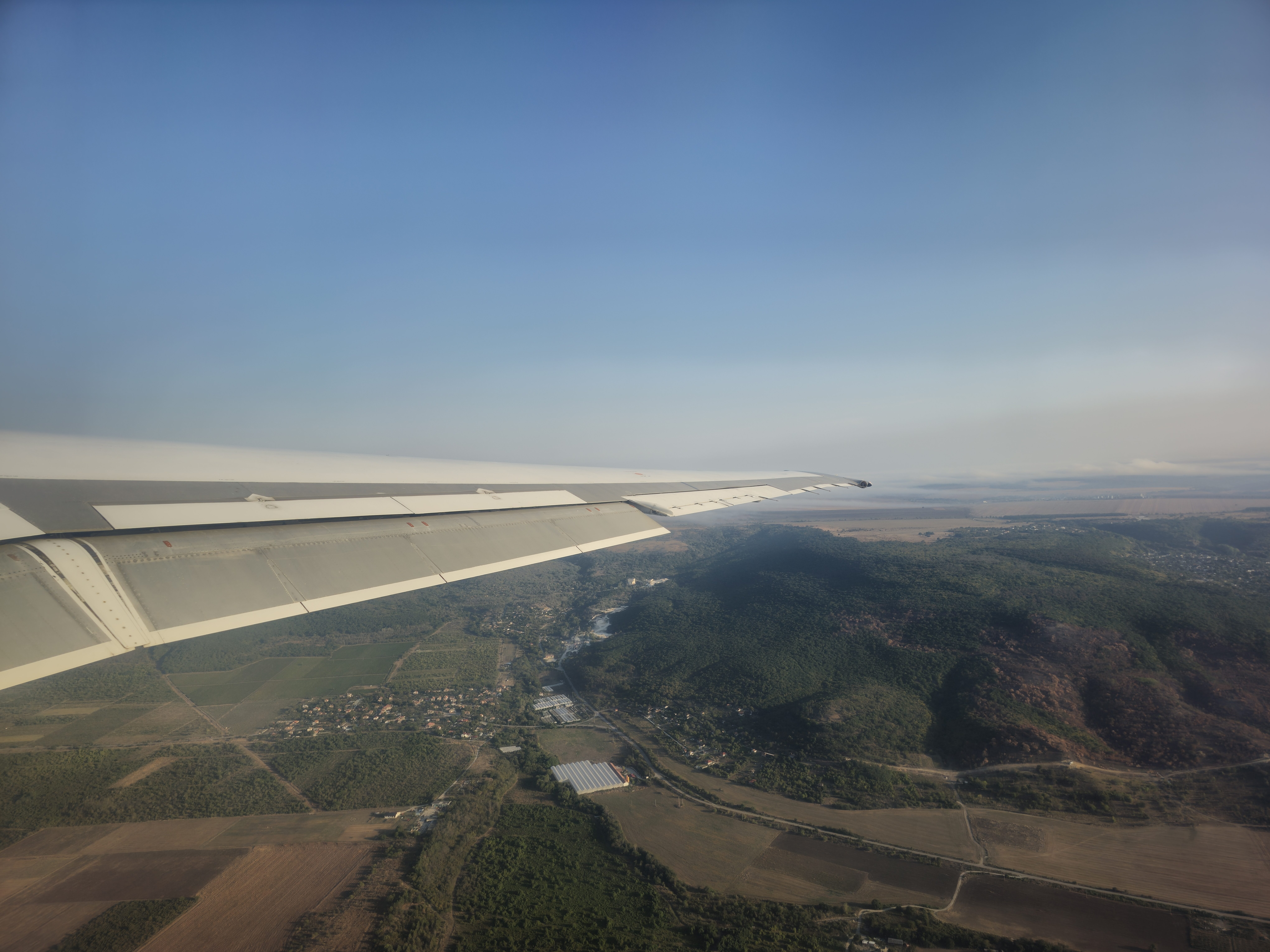 Reassuringly, after a long take-off roll, the nose was pointed skywards, and the MD-82 rocketed upwards into the Bulgarian skies. Taking off into the opposite direction to Varna, our initial climb out took us over a mixture of forests, fields and hills plus the occasional village, the two noisy engines likely providing an unwelcome Sunday morning alarm clock to those below. Unfortunately, views of Bulgaria were not to last for long and around three minutes after taking off, a thin layer of cloud swooped in below, ensuring that little else of Southeastern Europe could be seen.
