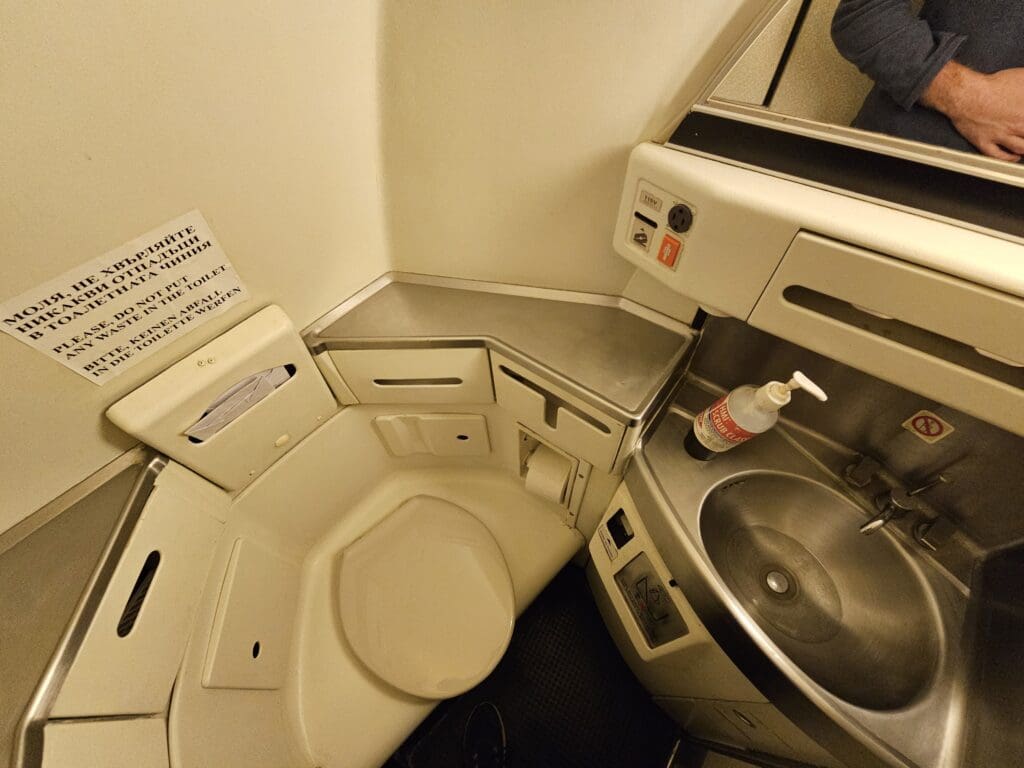 With little to see outside other than the MD-82’s starboard wing, and seeing as my two seatmates had woken up from their morning slumber, around halfway into the flight, I decided to journey rearwards and sample the delights of the aircraft’s lavatories. Like most MD-80s, LZ-LDM features a grand total of three lavatories – two at the rear of the cabin on either side of the aisle and another at the very front of the aircraft. A quick sum revealed this to equate to one toilet for 55 passengers, which proves better than the ratio on most low cost carriers’ Airbus A320s and Boeing 737s. After my neighbours had kindly stood up to allow me to pass, I turned left and journeyed the short distance to the rear of the aircraft. Pre-empting my reason for being at the rear of the cabin, as I neared the lavatories, one of the flight attendants politely opened the door to one of these. After squeezing in, unsurprisingly, I was hit by a wall of noise from the engines, with this part of the aircraft appearing to have poorer sound insulation than the main cabin. Examining this, whilst the lavatory was neither the largest nor most modern and complete with plenty of marks and scratches, I was pleased to find this to be in a clean and tidy state. Serving its vital purpose, I was thus left with nothing to complain about following my short trip and soon returned to my seat, relieved and content.