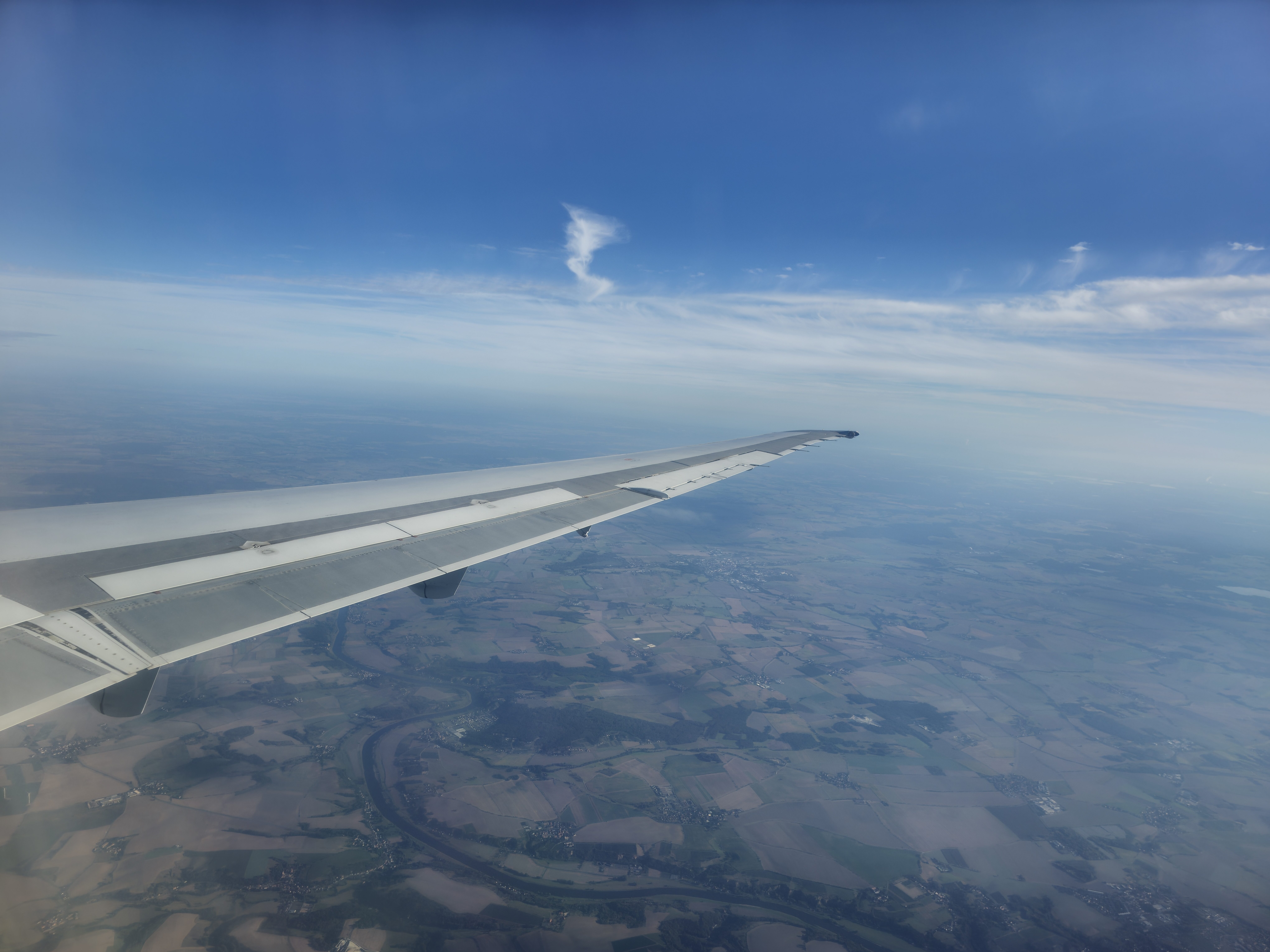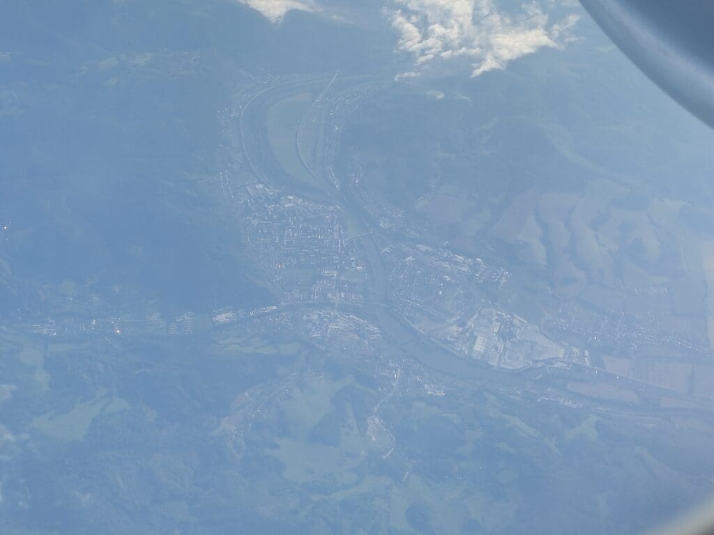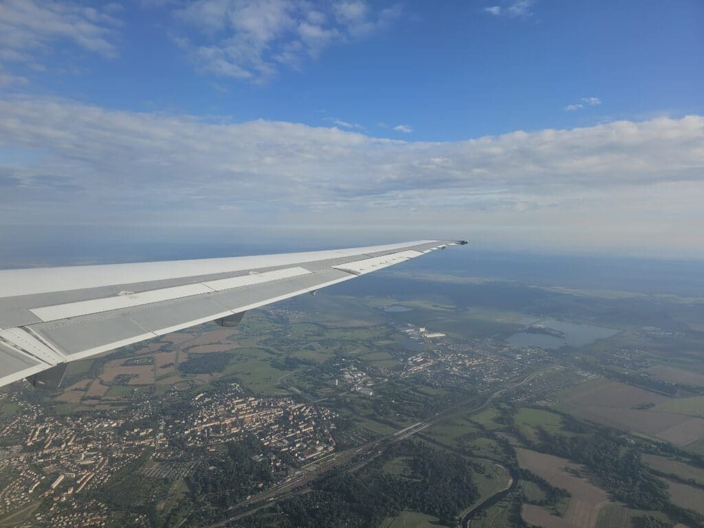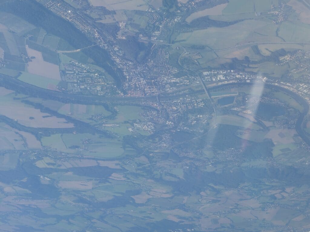 After a few minutes, the mountains could be seen sinking back down into hills and fields as we neared Slovakia’s border with the Czech Republic and after 14 minutes in Slovakian skies, the aircraft made its fourth border crossing of the flight. First up on our trek from east to west across the Czech Republic was the Zlín Region, famous for its local aircraft manufacturer, Zlin Aircraft. As we cruised over the country, a mixture of fields, forests and towns could be seen and several minutes after entering Czech airspace the city of Olomouc came into view, followed by Hradec Králové. As we cruised high above the latter, the city’s small airport could be seen, although I managed to spot few aircraft on the group other than the little white dots of light aircraft.