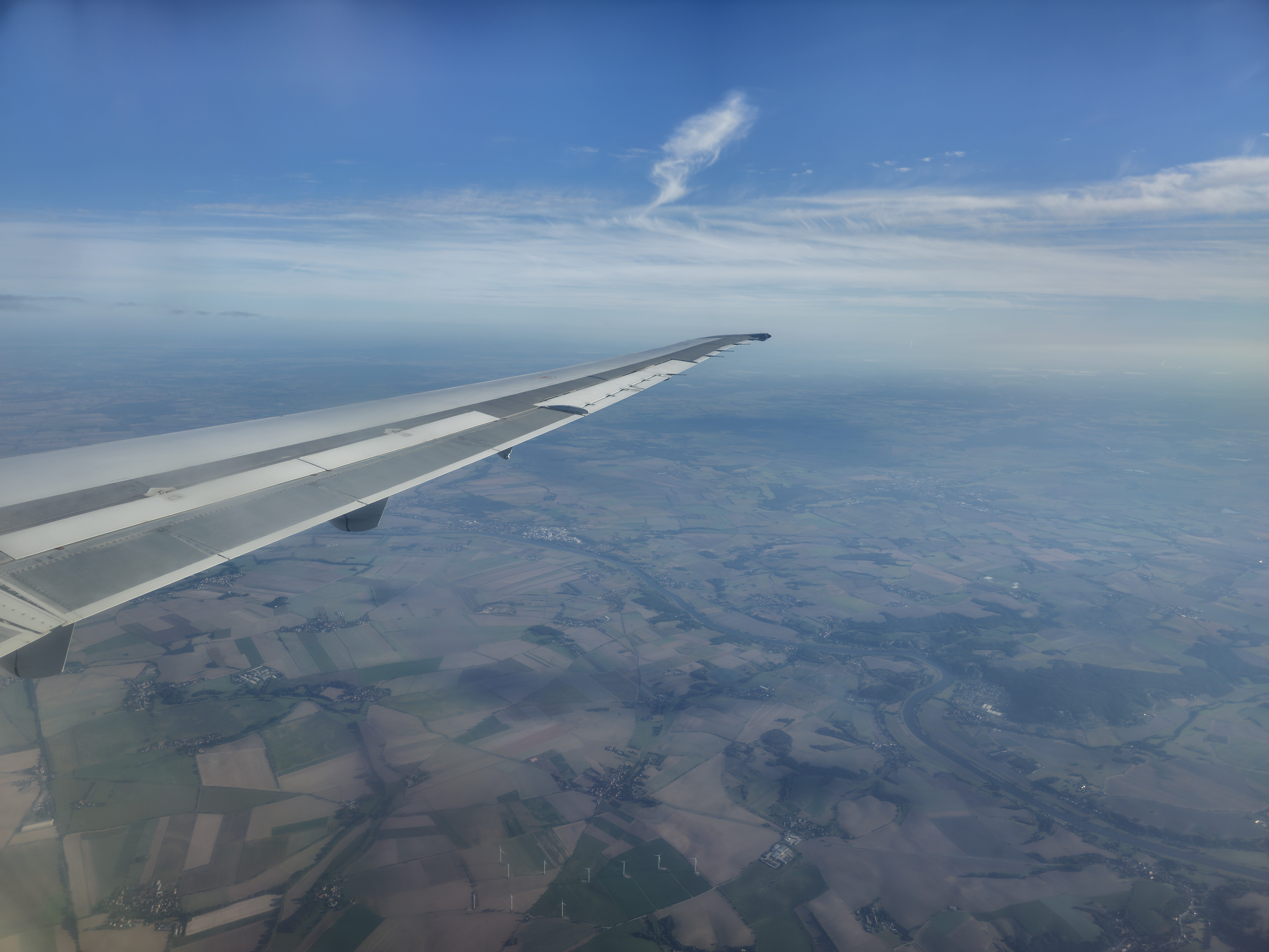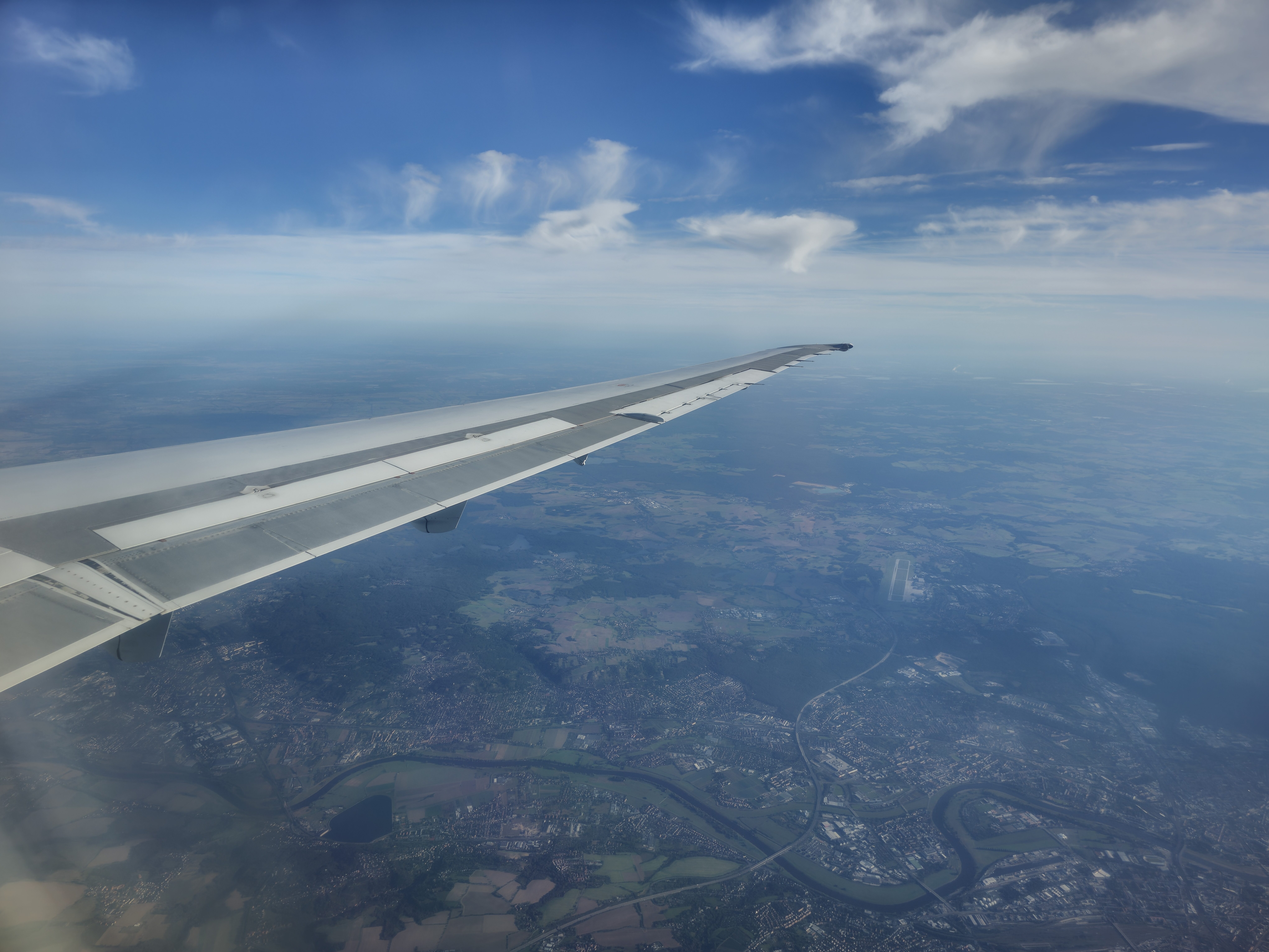 After a grand total of 27 minutes spent in the skies of the Czech Republic, the city of Děčín and the winding Elbe River that flows through this appeared before we entered German airspace. At this time, the seatbelt signs were switched on and the crew passed through the cabin, ensuring that all was secure and in place for our arrival. Almost immediately after entering German airspace, the fringes of the city of Dresden appeared as we followed the winding Elbe River towards this. Soon, the city centre, as well as its airport could be seen as we continued to sink down towards the flat landscape below.