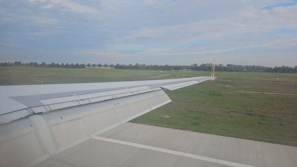 As we cruised over Central Europe, it dawned on me that this may well be the last MD-80 flight I take for quite some time (dare I say ever!) and I soaked up the atmosphere and the slightly fuelly scent, and took in the views as we approached the northwestern end of the Czech Republic. With Leipzig sitting a short distance away from Germany’s border with the Czech Republic, I was not too surprised to find that the aircraft commenced its descent whilst still in the skies of Central Europe. Upon reaching the Central Bohemian city of Mladá Boleslav, at 0843 German time, the noise decreased from the engines whilst the vibrations increased as we began our journey back to the ground. A short time later, I spotted Hradčany Airport. Once an important Soviet military base on the fringes of the Eastern Bloc, following the collapse of the Soviet Union, the airport was abandoned, and today, no aircraft remain other than the odd ultralight.