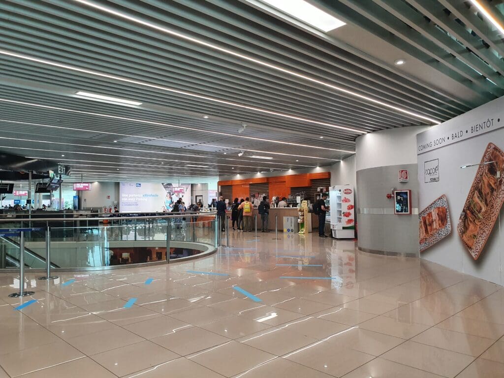 Following a quick journey over the apron, I arrived at the small square-shaped satellite terminal and wasted no time in exploring this. Inside, this seemed to be slightly dated in its design and tatty in its aesthetic, clearly having seen better days. Whilst this is not an automatic disqualifier, my first impression was soured somewhat since plenty of rubbish could be seen dotted about waiting to be cleaned up whilst I also spotted several pieces of gum stuck to the seating in various places across the terminal. Furthermore, the scent of cigarette smoke seemed to be omnipresent across the terminal, something which was probably attributable to the multiple smoking booths scattered throughout the waiting area. In terms of facilities, these were limited to a couple of cafés – both of which seemed to feature long queues for the duration of my stay, as well as an Aelia duty free store and a small WHSmiths shop. Turning to the positives, plenty of seating was on offer throughout the terminal and as is unfortunately not the case at many airports, a good number of working plug sockets were available which I soon made use of to charge my phone. As many passengers expect, complimentary wifi was provided and this seemed to work well for the duration of my stay. Importantly for aviation enthusiasts, sitting high above the ground, large glass windows running along all sides of the terminal offered a fantastic view of the movements outside however these were slightly tinted and in need of a clean ensuring that any decent photography proved to be rather difficult.