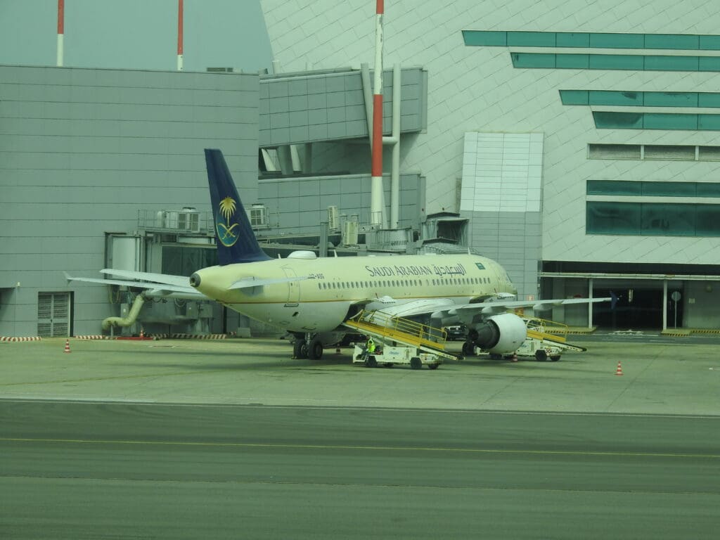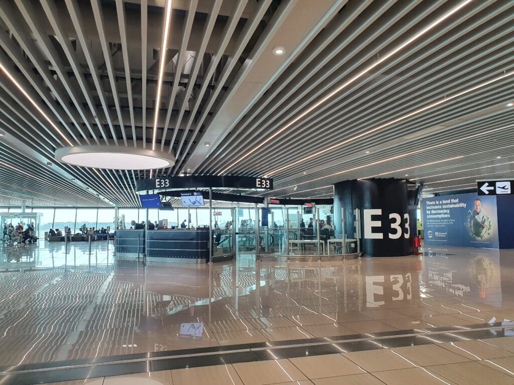 That afternoon whilst I did not manage to spot anything particularly rare, several aircraft outside were not examples that I would typically see regularly back in the UK. For example, amongst the masses of EasyJet, ITA Airways and Wizz Air jets across the airport, I managed to spot a couple of increasingly rare Boeing 737 Classics, an AirHorizont example parked up at a remote stand waiting for its next sortie and a Bluebird Airways aircraft (not the Icelandic cargo airline) which departed off on a scheduled flight to Tel Aviv during my stay. Meanwhile, upon arriving at the satellite terminal an all-white Air Moldova Airbus A320, a Qatar Airways Airbus A330-300, Royal Jordanian Airbus A319 and Turkish Airlines Airbus A321 could all be seen waiting at the gates outside ready to head off on their eastward journeys. Meanwhile, over at the main terminal, a Saudia Airbus A320 could be seen being prepared for its flight to Jeddah. After wandering around, I plonked myself down on a seat that provided a good view of both those aircraft landing on Runway 16R and those departing from Runway 25. That afternoon, my boarding pass informed me that boarding would commence at 1645 and take place through Gate E33. However, upon checking the departure boards, these revealed that the Heathrow flight’s departure gate had shifted to Gate E37 – of course, given the small size of the terminal, this proved to be no issue.