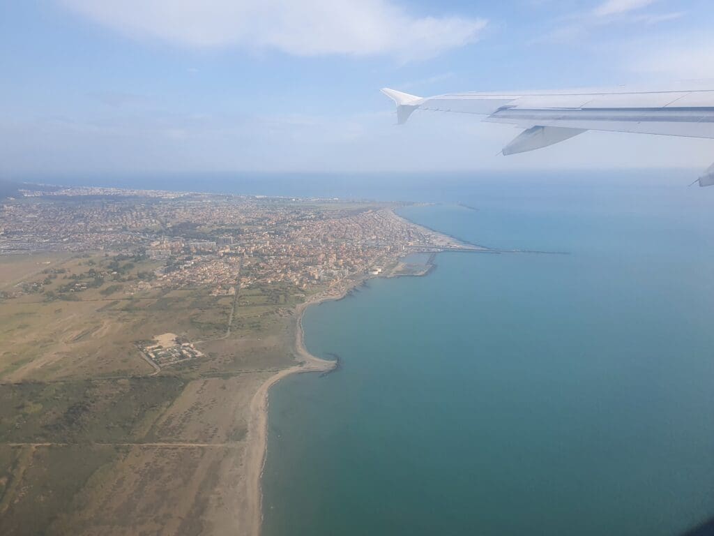 Once away from the stand, I drifted in and out of sleep as the Airbus made its way to the runway before waking up for good as we waited for a Vienna-bound Austrian Airbus A320 to depart ahead of us. As this aircraft began to roll down the runway, the London-bound Airbus made its way onto Runway 25 and came to a halt for a minute or so whilst the Austrian jet cleared out of the skies up ahead. As we waited, I managed to spot a rare Ilyushin Il-76TD-90VD belonging to Azerbaijani cargo airline Silk Way Airlines. By coincidence, despite this aircraft’s rarity, I had watched the same aircraft the previous day at London Stansted as it rocketed off into the cloudy skies at the start of its journey down to Rome! Following our short pause, the two engines spooled up and the Airbus commenced its powerful and relatively short take-off roll during which I was treated to good views of Rome Fiumicino Airport before the Lazio coastline came into view as we made our way up into the Italian skies.
