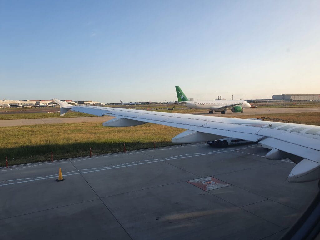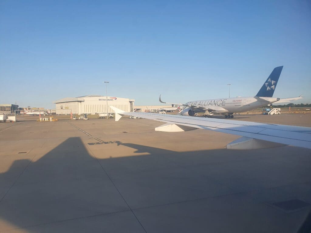 Once off the runway, the Purser welcomed all to London in Italian and English, during which they gave their usual update on the local time and advised passengers to remain seated until the seatbelt signs were extinguished. After leaving the runway, the aircraft quickly taxied past Terminal 2B where a line of widebody jets could be seen being readied to head off on overnight flights to far-flung destinations. A minute or so later, the aircraft then pulled into Stand 220 at Terminal 2 and the engines spooled down. Perhaps understandably given the tight legroom, as soon as the seat belt signs were extinguished many of those onboard jumped up and fortunately, it didn’t take too long for the jet bridge to be connected up to the main cabin door. However, thanks to my position at the rear of the cabin combined with many passengers’ heaps of cabin baggage, it took quite a while to exit the jet.