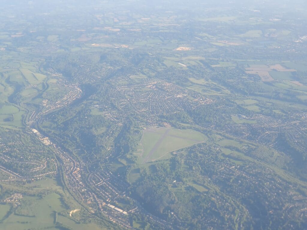 A short time later, the aircraft reached the town of Sevenoaks, at which point both Gatwick Airport and the airfield at Redhill could be seen a short distance to the west. This was followed by the historic airfield of Biggin Hill which now serves as a popular hub for private jets. At this time, a luxury Manx-registered Bombardier Global 5000 jet could be crossing below as it approached the airport following a flight from Tel Aviv. After passing Biggin Hill, the aircraft banked to the left and soon rolled out on a westerly heading, providing an early indication that we would make an approach onto one of Heathrow’s 09 runways rather than approaching the airport from Central London. At this time, continuing with the aviation sights, the airfield of RAF Kenley, a former important Spitfire base and now glider airfield, could be seen below. This is an airfield I have some familiarity with having flown several glider flights from there the year before!