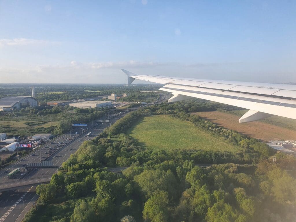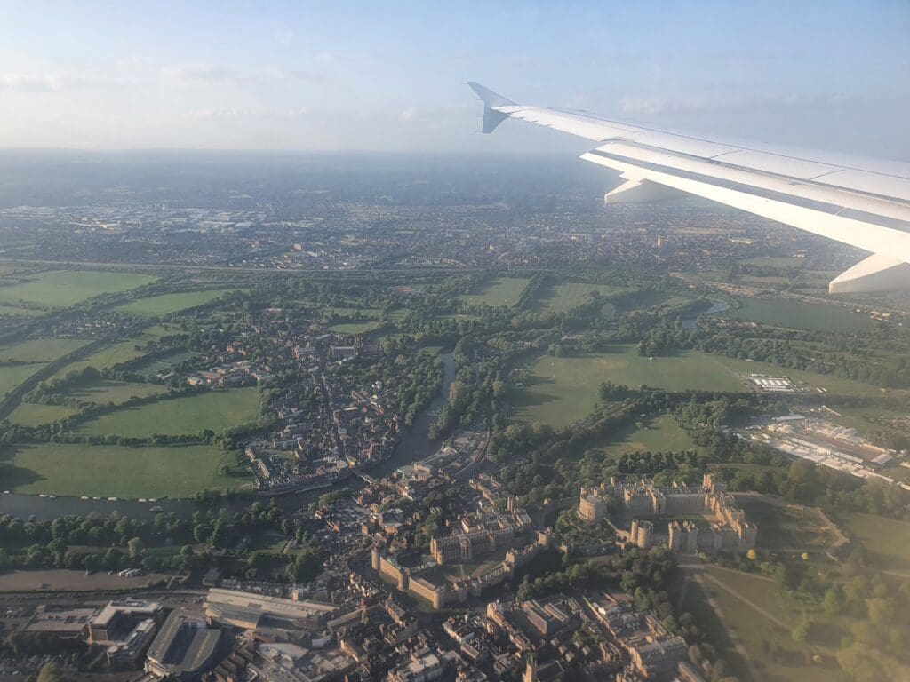 Flying on a westerly heading, a good view was offered of the scenic Surrey Hills and the occasional well-to-do suburb that sits beyond the southern boundaries of London – such as Purley, Epsom and Oxshott. A short time later, the town of Woking could be seen before a couple of aviation sights came into view once again off the left wingtip. The first of these took the form of Farnborough Airport, followed a few moments later by Blackbushe Airport. Upon reaching Swinley Forest, the aircraft banked to the north as it began to turn onto the approach for Heathrow Airport’s Runway 09L. Establishing itself on approach just before reaching the UK’s Legoland at Windsor, I was soon treated to views of Eton and Windsor, where fantastic views of the latter’s famous castle could be seen just before the flaps and gear fell into position.