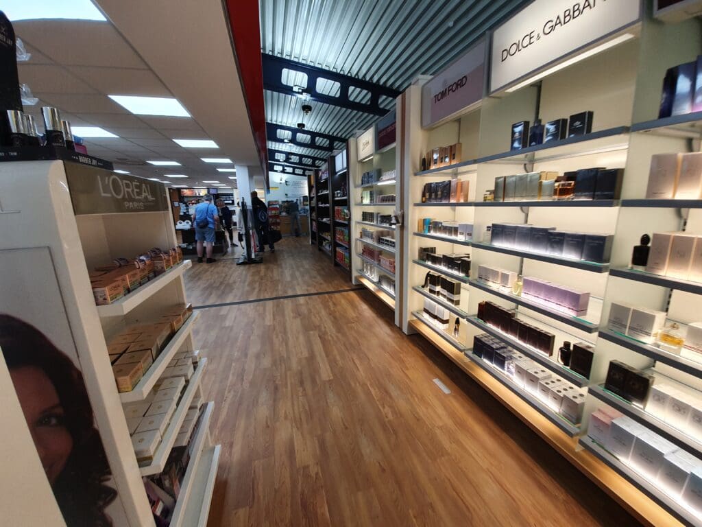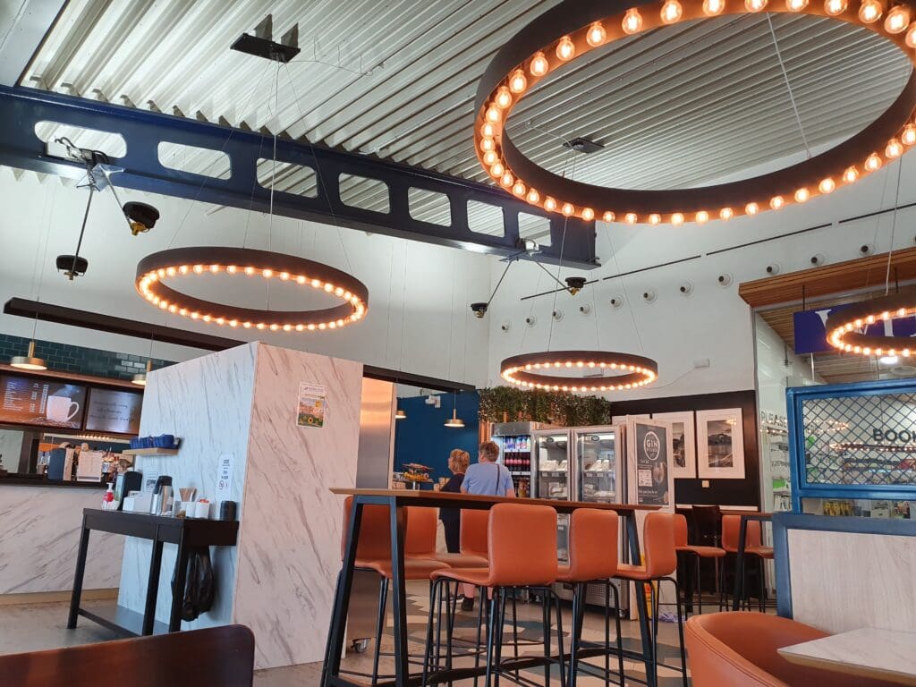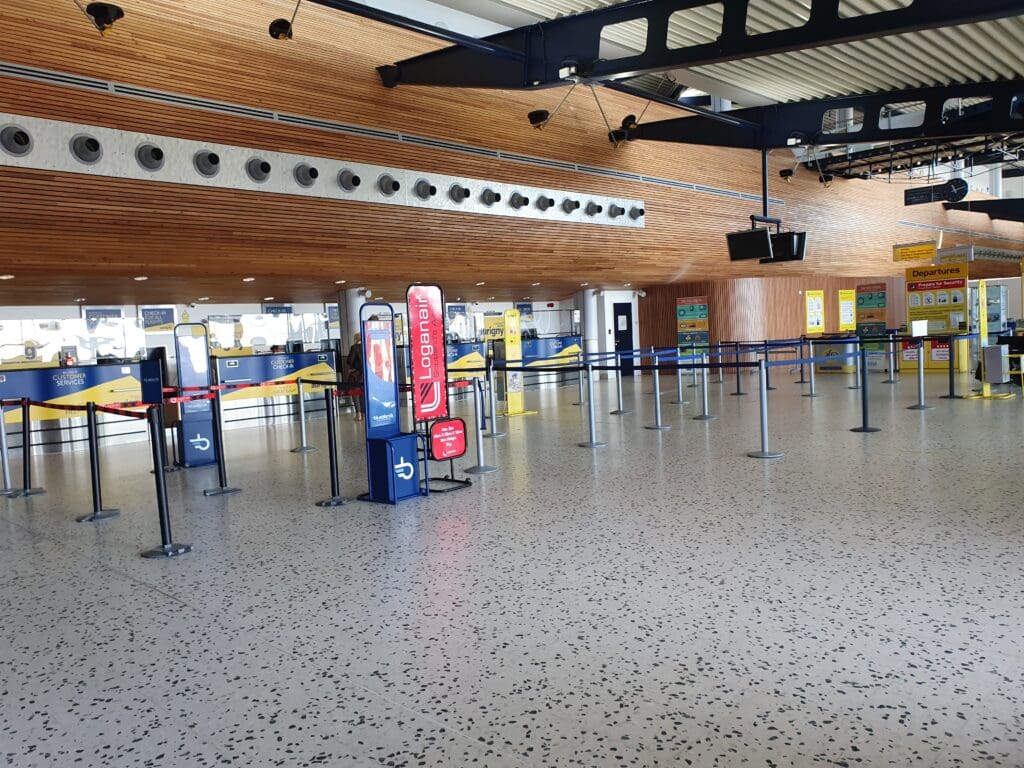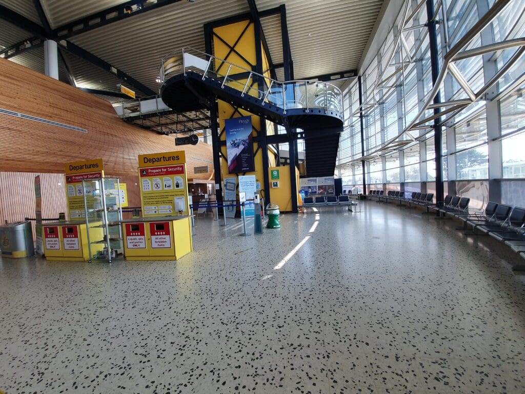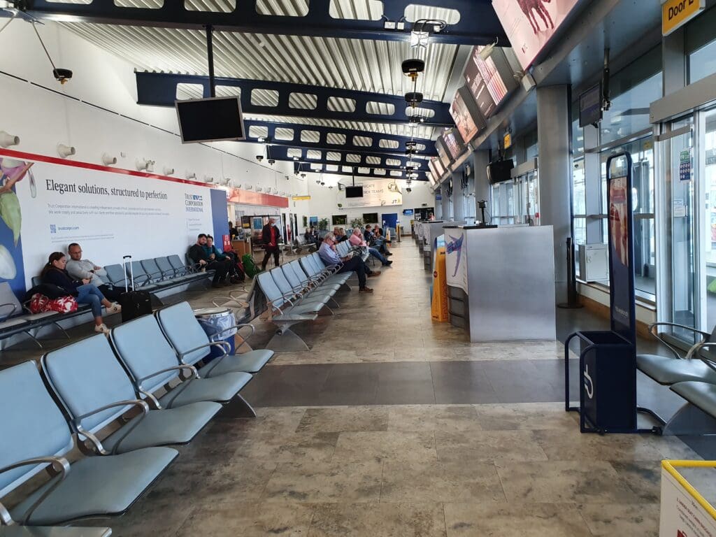 After making the very short walk to the security area, I decanted my things into various trays and passed through the metal detector whilst my possessions journeyed through the x-ray machine. Being the only passenger at security at that time, and with an army of G4S staff on hand to assist, I managed to make it through to the airside area within about a minute, emerging in the terminal’s small duty-free shop. This featured the usual selection of goods, alongside a small collection of local products and souvenirs. Not needing to make any purchases, I passed through this and continued into the small waiting area. This consists of a hall with plenty of benches, a branch of WHSmith and a café-bar. Whilst I found this part of the terminal to be modern, pleasant and clean, it can hardly be described as an area designed for long waits and I would not advise passengers to turn up there with hours to go until their flight’s departure.