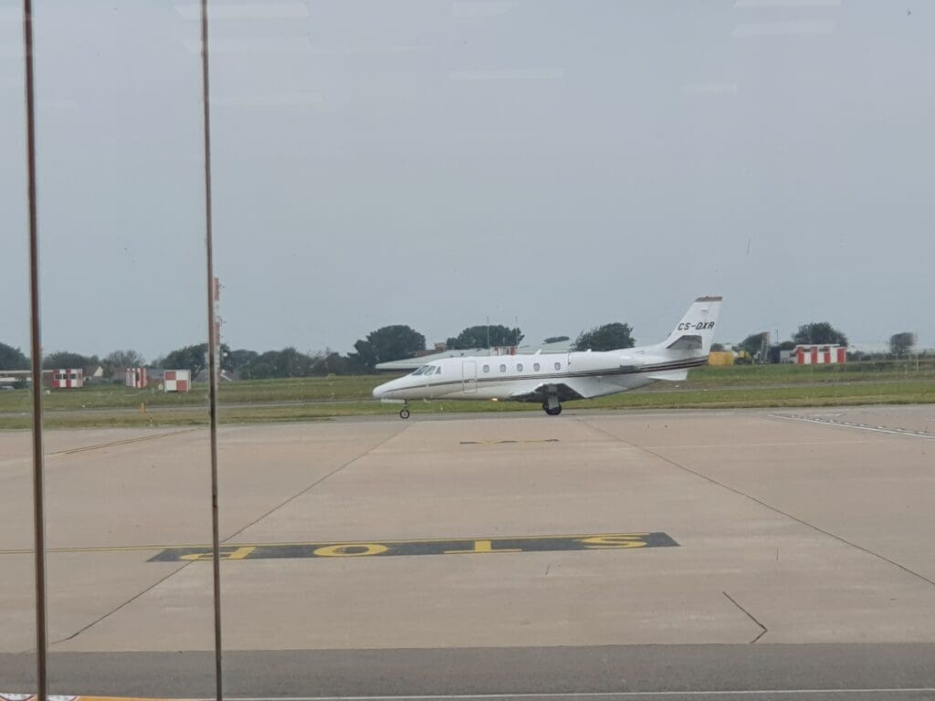 Seeing as the waiting area sits on the ground floor of the terminal, whilst views of the action outside from the departures hall are possible, these are not fantastic and any decent photography may serve to be near impossible. Taking a seat near the window, as I waited I worked away on my laptop and watched as the occasional aircraft taxied past. These included several Aurigny aircraft, as well as a multitude of light aircraft and the Coastguard AW189 helicopter returning to its base at Lee-on-Solent on the south coast of the UK. More luxurious movements included an Isle of Man registered Cessna 525B CJ3 and a larger NetJets operated Cessna 560XLS Citation Excel arriving from Cannes, later followed by a private AW109 helicopter. The final corporate aircraft movement of my stay took the form of a Pilatus PC-24 arriving from Leeds East Airport, previously known as RAF Church Fenton. As time passed, East Midlands and Jersey-bound passengers began to filter into the airside area of the terminal, although this was far from full for the duration of my stay.