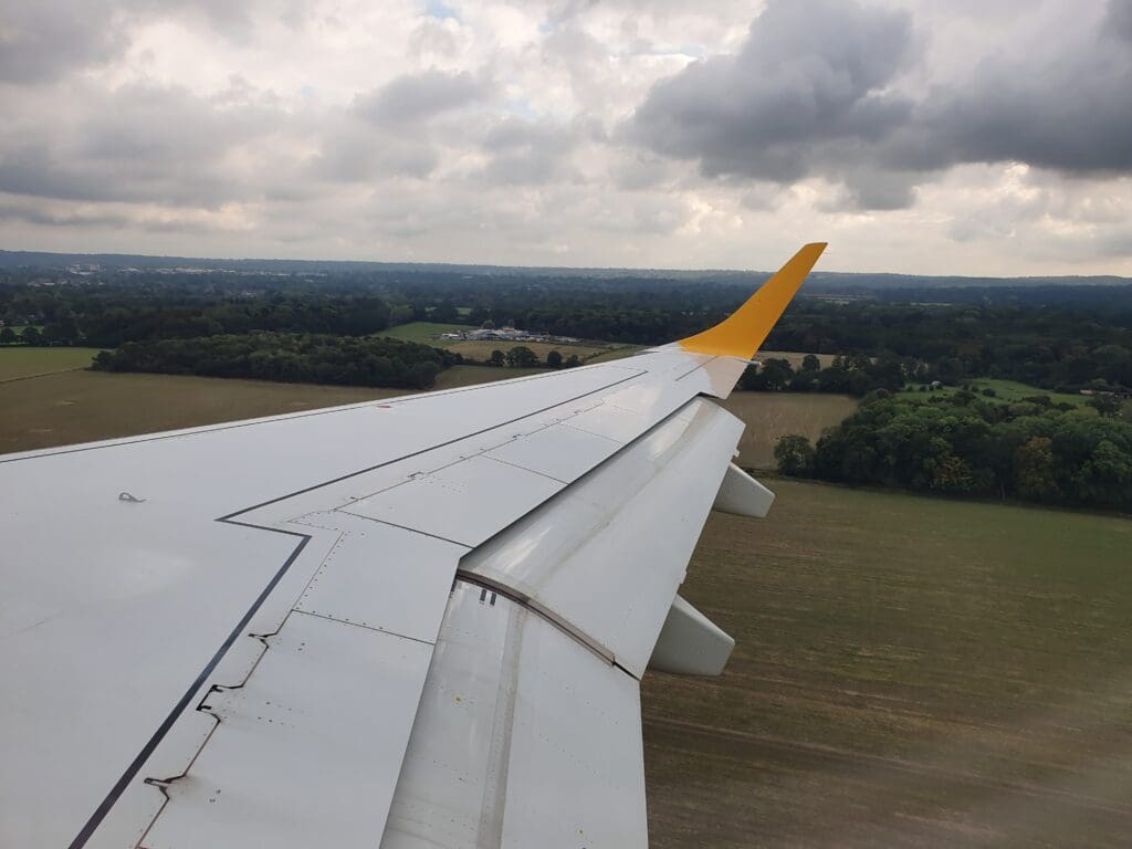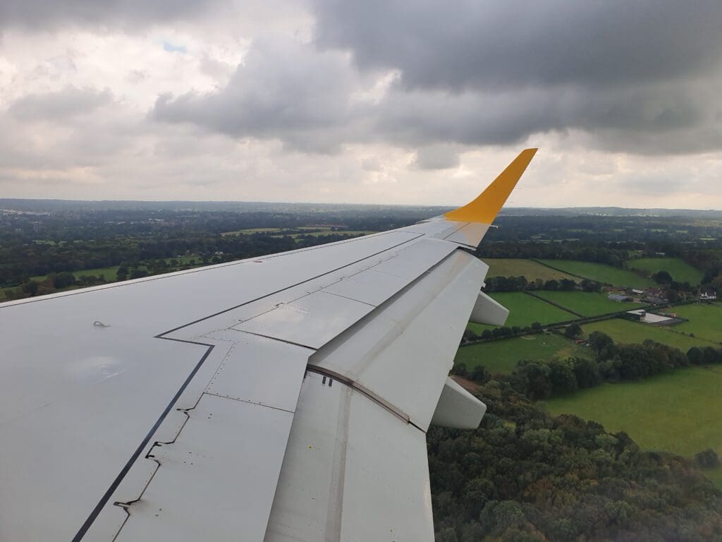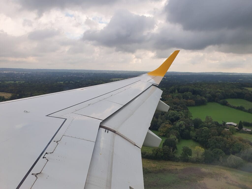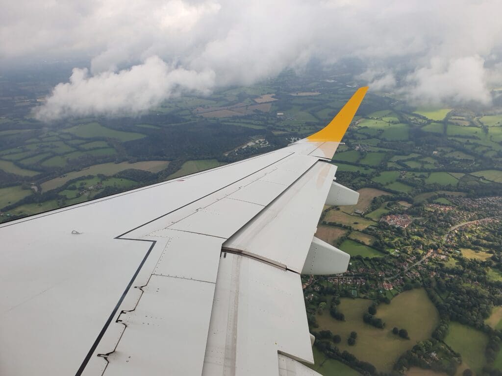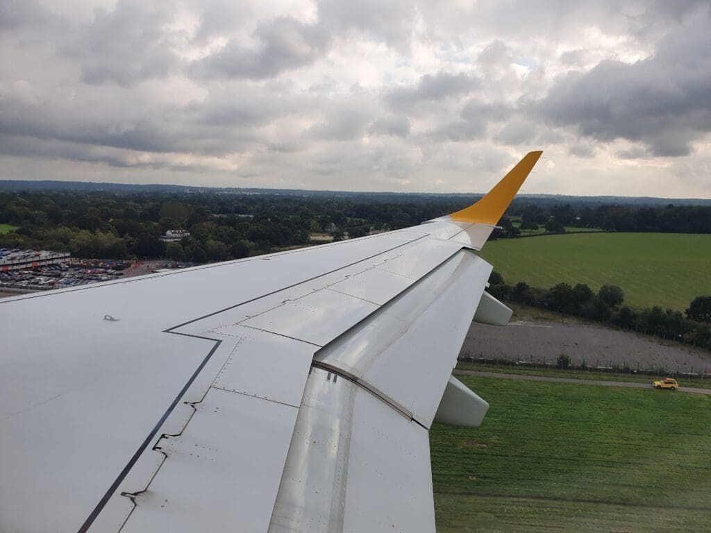 As we neared the South Coast coastline, a gap in the cloud revealed the Manhood Peninsula and Pagham Harbour, as well as the West Sussex seaside town of Bognor Regis – a popular haunt of holidaymakers in the days before low cost flights. The clouds then once again stole the view of Southern England as the seatbelt signs were reilluminated and the crew came around ensuring all was in place for our arrival into Gatwick. After flying past Worthing, the aircraft broke through the clouds at an altitude of 5,000 feet revealing the green fields and woods of the West Sussex countryside as the aircraft skirted around Horsham before lining up for an approach to Gatwick’s Runway 08R.