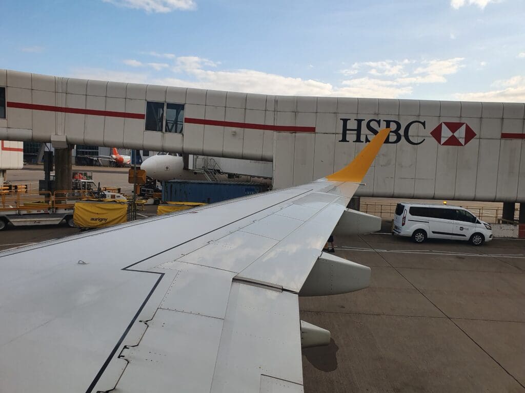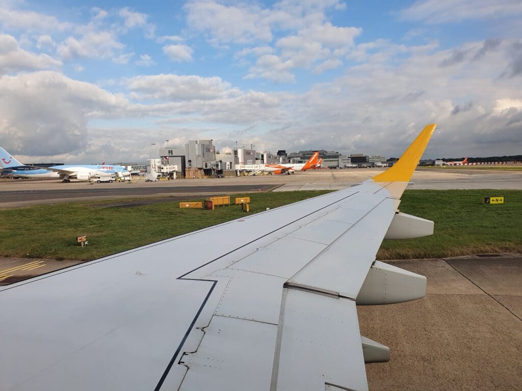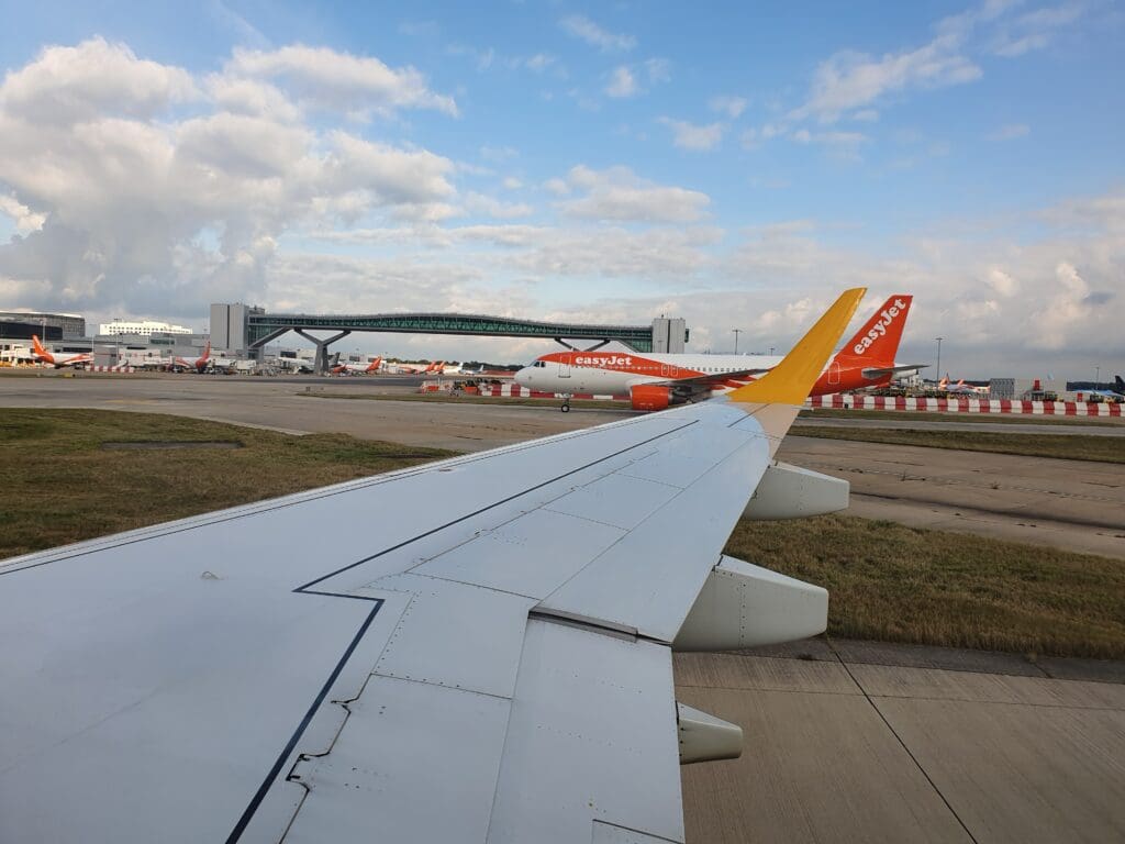 From the runway, the aircraft commenced what was to turn out to be a long taxi. After skirting around the satellite pier of the North Terminal, the aircraft came to a halt. Following a couple of minutes of waiting, the Captain’s voice filled the cabin who informed all that for ‘first time in ages’ Gatwick was busy and due to our early arrival, an EasyJet aircraft was occupying our allocated gate. This wait turned out to be longer than expected and fifteen minutes after the aircraft came to a halt, the apologetic captain made another announcement advising that the aircraft was now being pushed back and that the taxi would recommence shortly. From my seat, I was able to spot the culprit, an EasyJet Airbus A320 departing off to Glasgow.