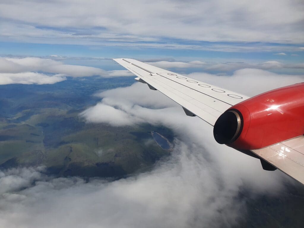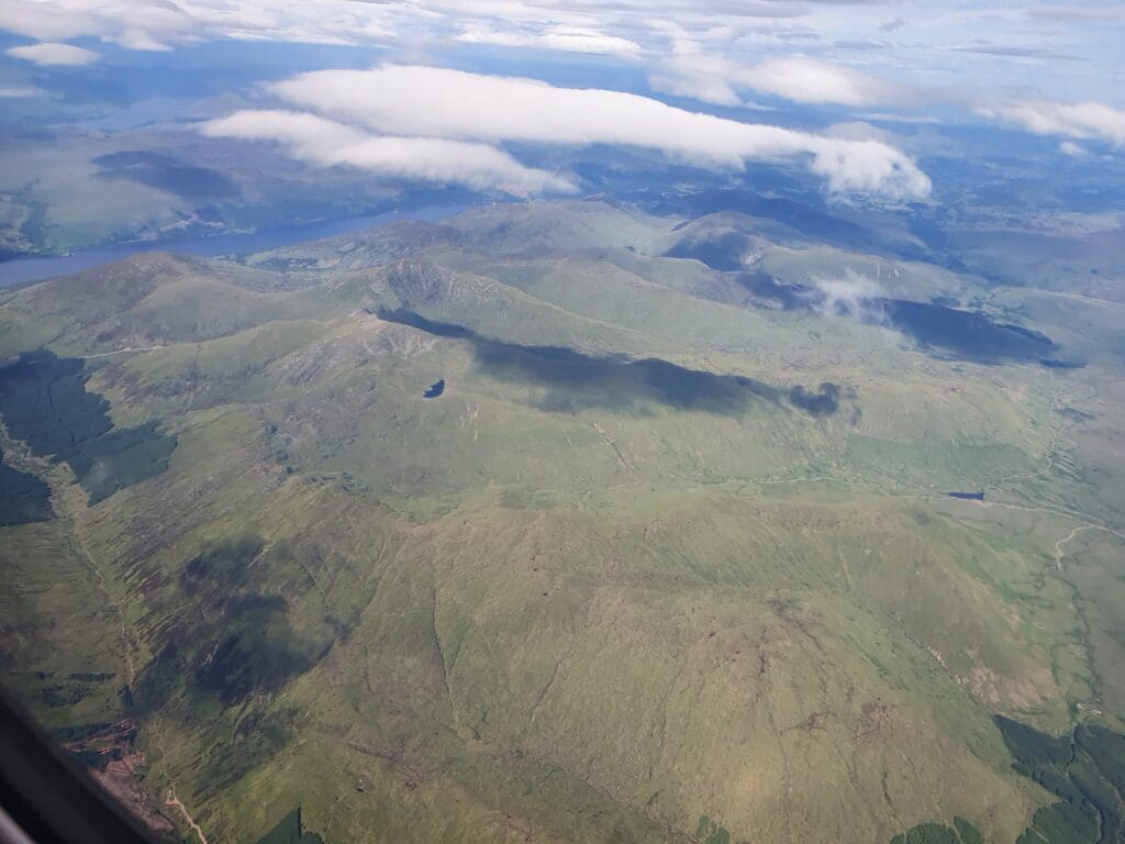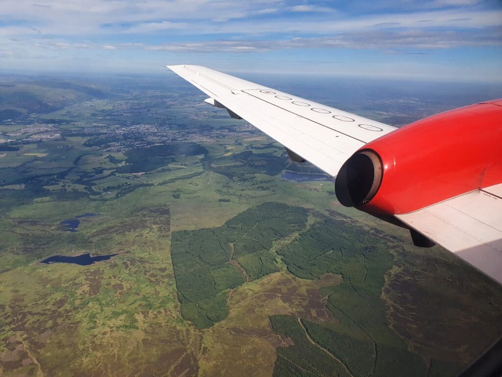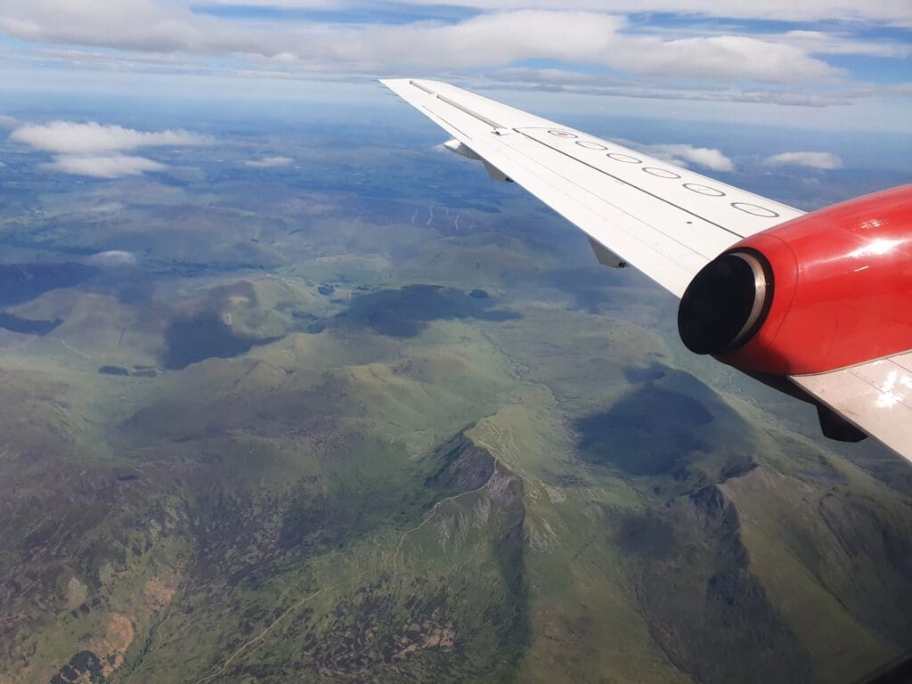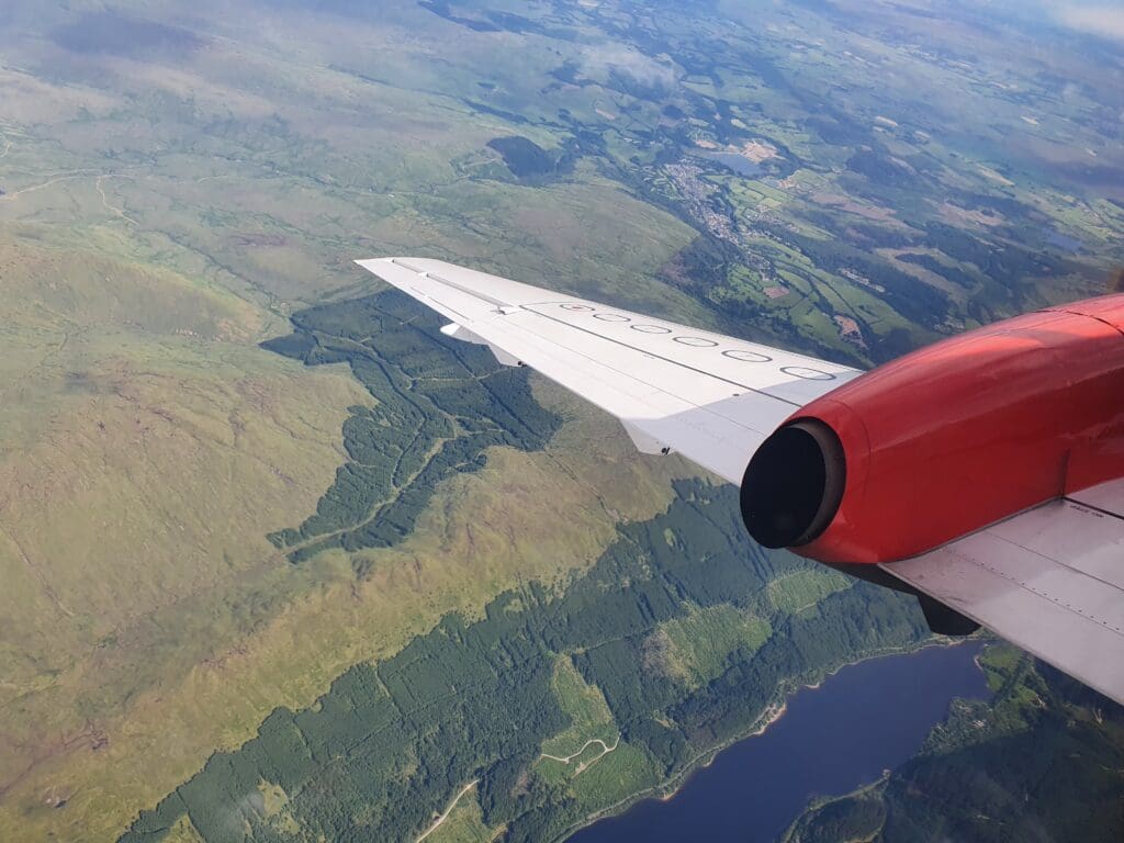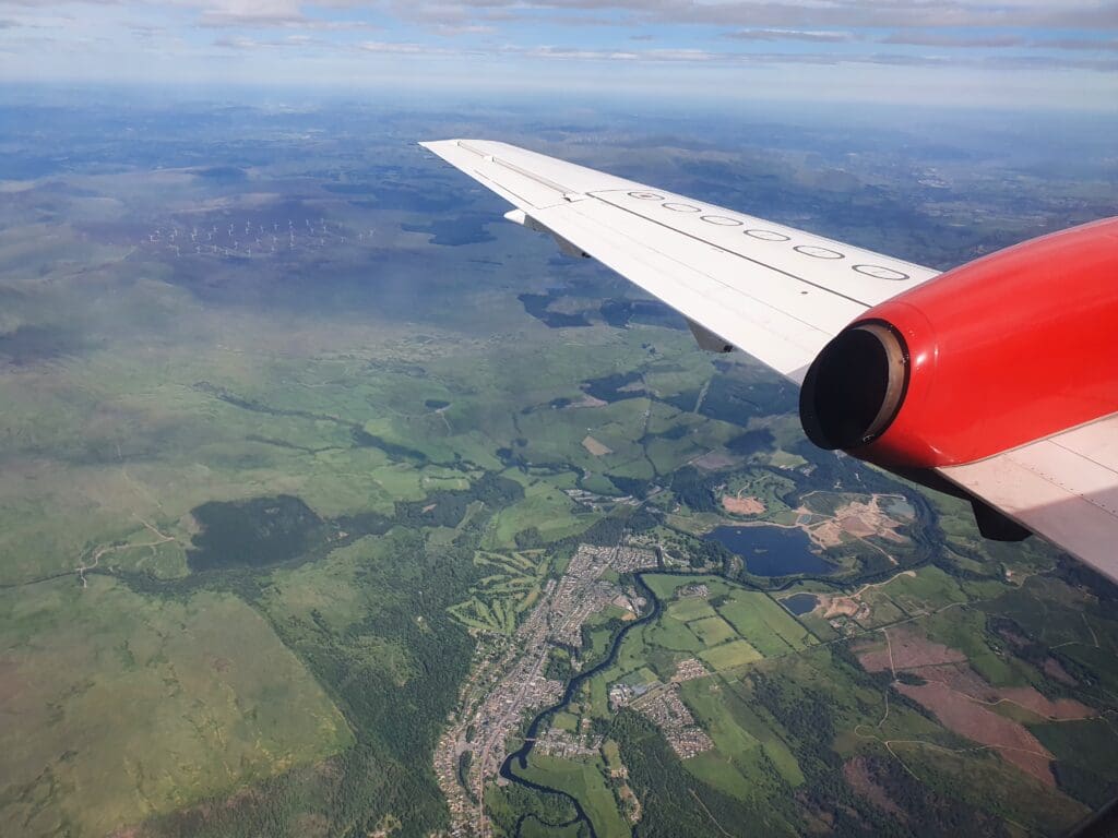 Following an uneventful trip, I returned to my seat just as the clouds began to part below. This initially revealed the very southern portion of the Cairngorms National Park around Blair Atholl and a few moments later the Saab could be felt commencing its descent. This was followed by the captain mentioning ‘twenty minutes to landing’ before the flight attendant made their pre-arrival announcement after which they passed through the cabin ensuring all was in position. As we descended, several lochs could be seen sitting in the picturesque Scottish countryside, the first being Loch Tummel followed by the larger Loch Tay and Loch Earn.