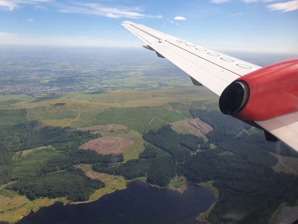 Whilst little could be seen during the first portion of the flight, after leaving Kirkwall the Saab had trundled southwards over South Ronaldsay and soon reached its cruising altitude of 15,000 feet. Upon leaving the Orkney Islands behind, the Saab crossed over the Pentland Firth, the short stretch of water that separates Orkney from Caithness. After reaching the mainland near John O’Groats, the Saab made its way down Caithness’ eastern coastline before crossing the Moray Firth. As the aircraft passed the city of Inverness, the cabin speakers came into life once more as the Lancashire accented First Officer commenced their long announcement that lasted for a few minutes. This began with a comprehensive overview of the route down to Glasgow, during which they noted that the skies would soon clear below and mentioned the sights that we could expect to see on both sides of the aircraft. Unfortunately, we would not be treated to a view of Scotland’s Cairngorms with the clouds not parting in time to see these. This ended with an update on the weather in Glasgow and a mention that we could expect to touch down in 25 minutes.