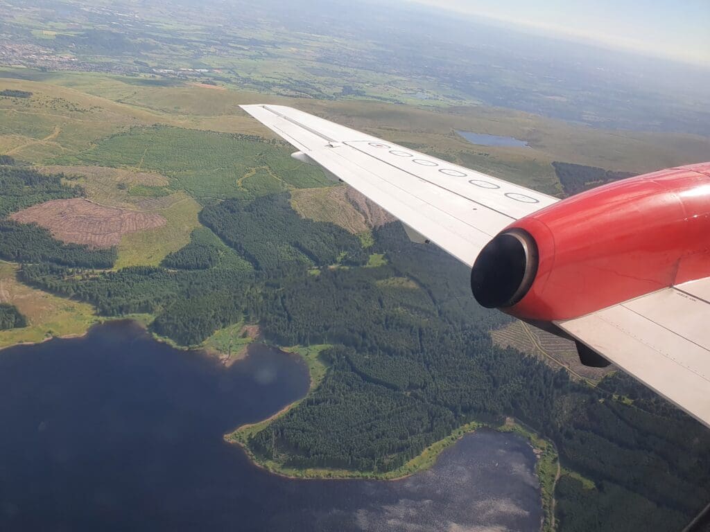 As the aircraft descended, the Saab swayed and shook a little as we crossed over the scenic peaks of the eastern end of Loch Lomond and the Trossachs National Park before we left this near the town of Callander. From there, the aircraft roughly followed the course of the winding River Forth sitting amid green fields before the scenery rose once again and transformed into the Campsie Fells. Having flown into Glasgow a fair number of times, approaching the airport from the north in good weather in one of my favourite approaches in the UK, and as we neared Scotland’s largest city my eyes were glued out the window and the passing hills a short distance below.