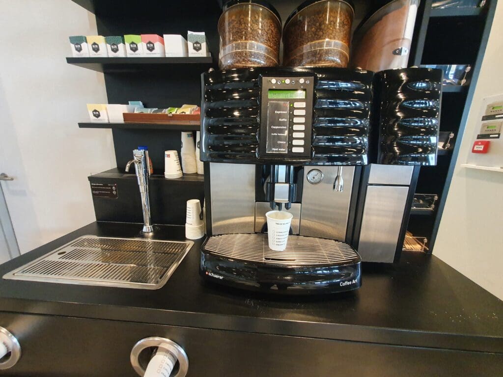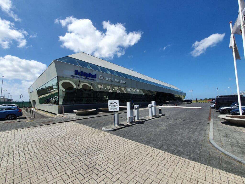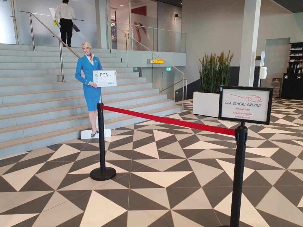 From the outside, Schiphol’s General Aviation Terminal is rather interestingly shaped, almost like an elongated diamond. As I entered this, two sets of smartly dressed crew could be seen ready to fly likely equally smartly dressed wealthy passengers to destinations across Europe and beyond. With the sum of my outfit not totalling over £50, I, and I suspect some of my fellow passengers, felt a little underdressed however it appeared that the terminal staff were used to DDA Classic Airlines’ passengers and I was not asked to leave, nor was my presence questioned! Inside the terminal’s main atrium, a sign had been placed up directing those flying with DDA Classic Airlines to head upstairs and to a small room which would serve as the waiting area and the airline’s operational hub that afternoon. As we entered this, we were greeted by no fewer than four DDA Classic Airlines staff dressed in the airline’s mostly red uniform who advised us to take a seat and relax, and that we could use the hot drinks machine next to the reception on the ground floor if we desired.