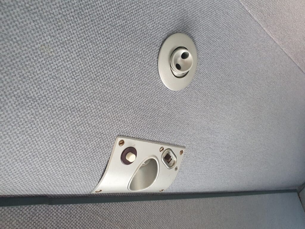 Knowing that plenty of my fellow passengers would also be interested in the opportunity to spend some time upfront, I then retreated back to the cabin and made my way to the rear of the aircraft where I briefly looked through some of the windows at the rear of the aircraft, snapping a few photographs. By this time, the aircraft was bouncing up and down slightly and so I clung up onto the open overhead luggage racks as I made my way up and down before retreating to 1A for good.