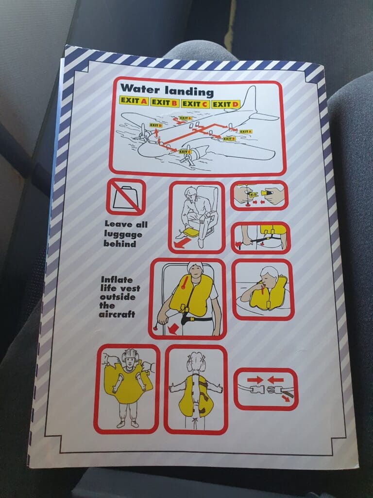 A little after 1345, one of the staff members stood up and advised all passengers in Dutch and then English that check-in was open and passengers were requested to make their way to the table at the entrance of the room with some form of ID. Following a short queue, we made it to the table where a couple of DDA Classic Airlines staff members were undertaking the check-in proceedings, and passengers’ boarding passes could be seen laid out ready to be handed over. After one of the staff members checked my passport, mine and my father’s initials were written on seats 1A and 1B on the seat map before stickers with these seat numbers were stuck to our boarding passes. As it happens, these were the same seats we had sat in fifteen years prior on our first Dakota flight! With these in hand, we returned to our seats near the window, and much to our surprise, the Dakota which had departed on its 30-minute sortie was still yet to reappear.
