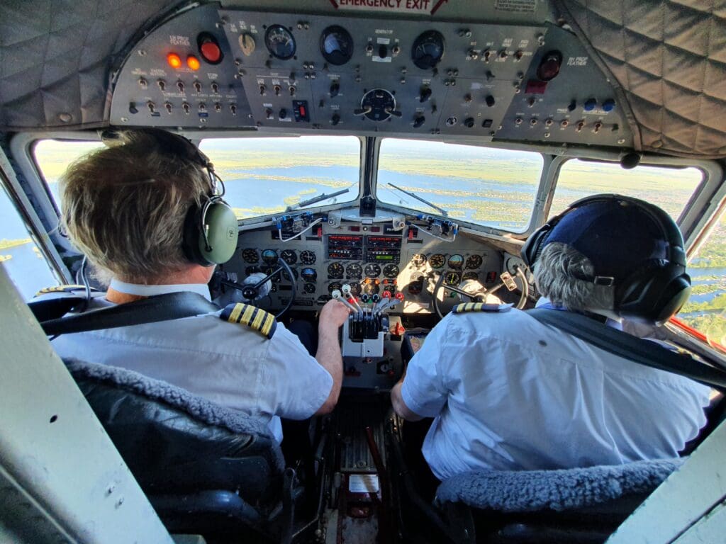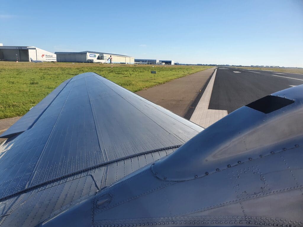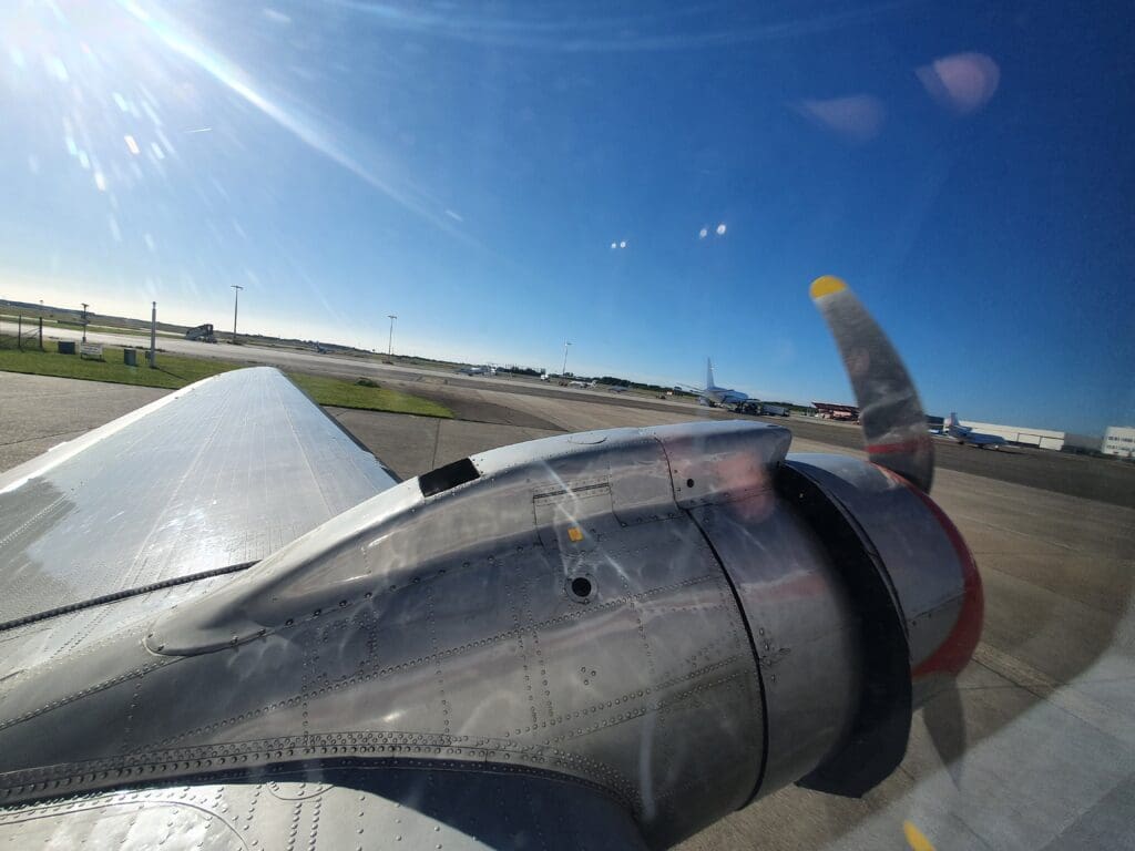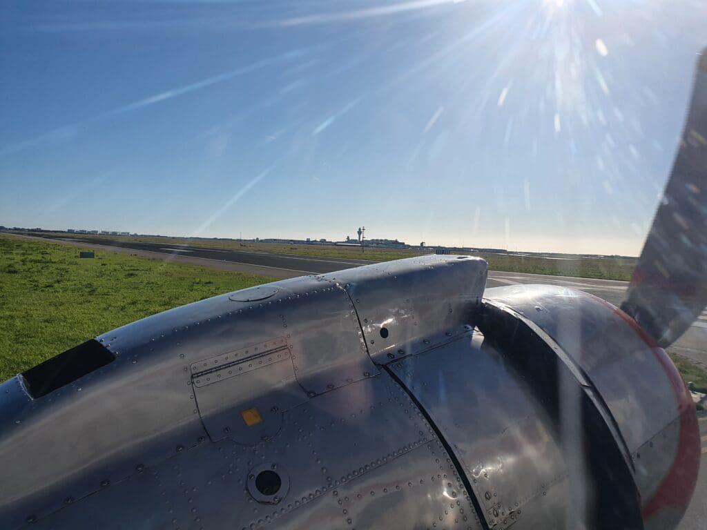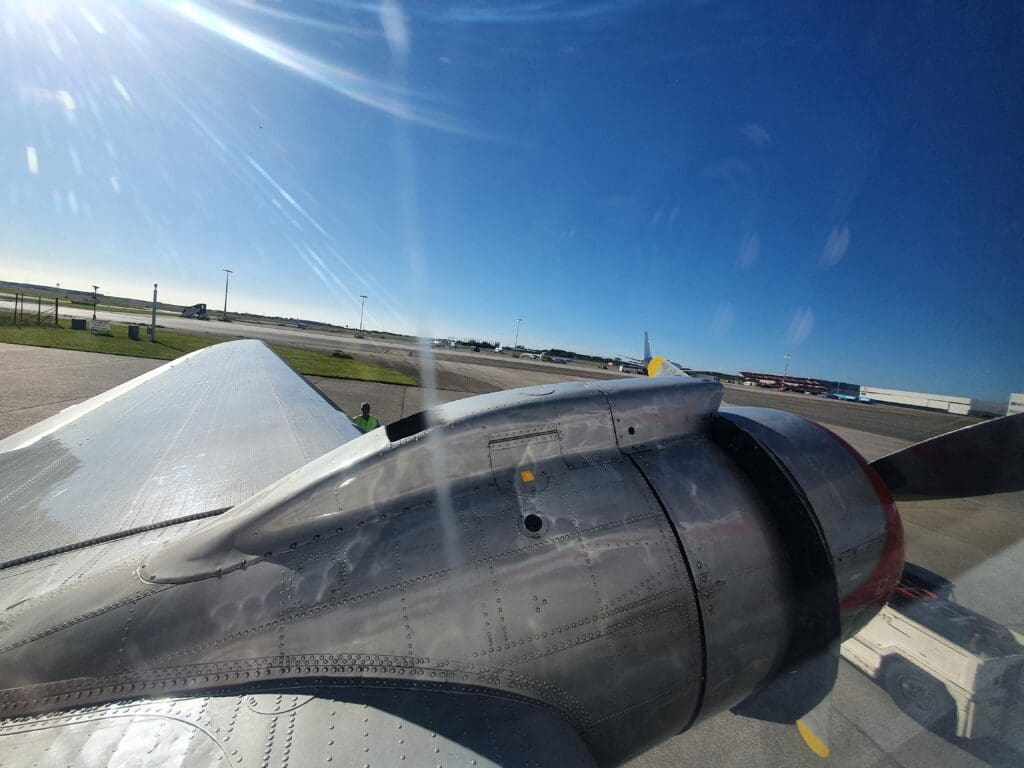 With no doors separating the cockpit from the cabin, after the flight attendant had finished their demonstration, the two pilots could be heard running through their pre-start checklists. Contrary to what the captain had said, following several long whines, one by one the two large Pratt & Whitney R-1830 Twin Wasp piston engines fired up into life with a puff of grey smoke, with their well-polished three-blade Hamilton Standard propellers whirling into life during the first start-up attempt. Despite sitting right next to the engines, their start-up still seemed to be a little quieter than you’d expect from a vintage piston-engined airliner. However, once a fellow passenger remarked how quiet the start-up had been, the flight attendant remarked on how things would become much louder during departure.