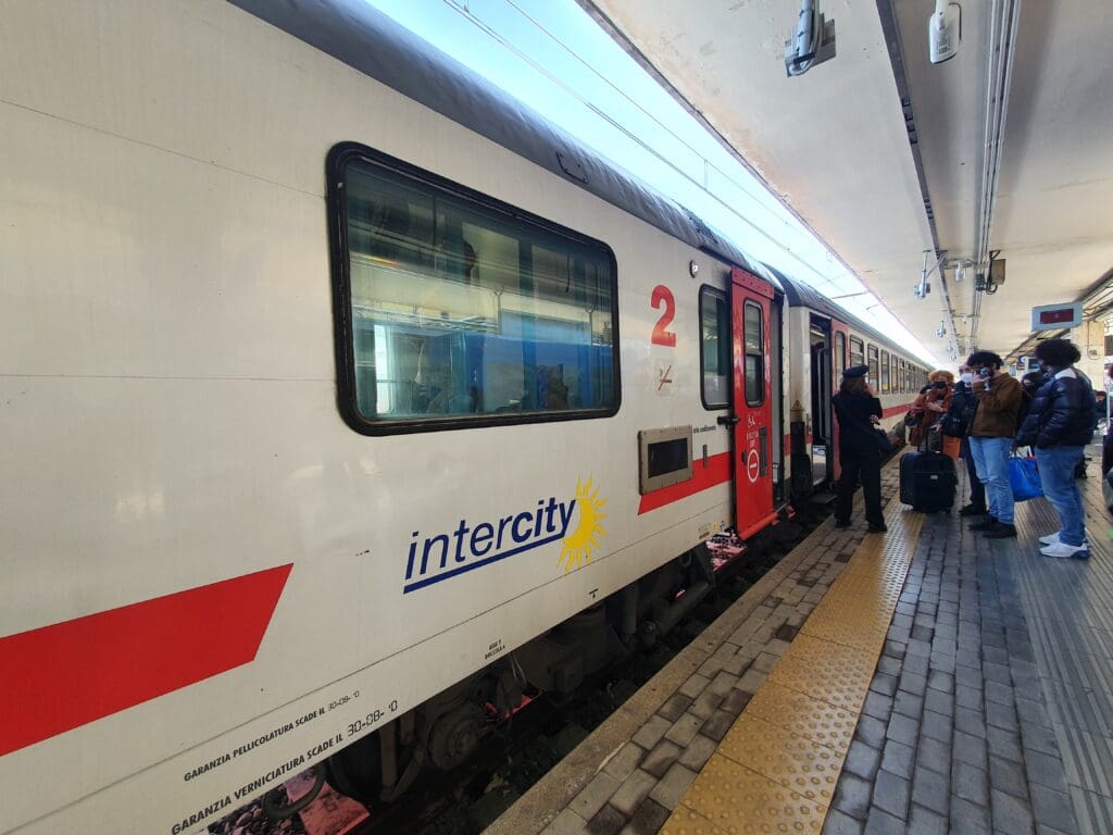 Following an eight-minute ride squished into an absolutely packed minuscule monorail carriage, I arrived at Bologna Centrale with about twenty minutes to go until the departure of the 1200 Intercity service which was bound for the city of Lecce at the other end of the country. Easily and swiftly purchasing a €10 ticket for this on Trenitalia’s app, I made my way through Bologna’s maze-like station and arrived at the platform with about fifteen minutes to go until departure. With the train service commencing its journey in Bologna, upon arriving there, a long rake of somewhat battered and retro-looking carriages could be seen waiting at the platform and I thus boarded the train without delay. To my delight, despite its dated-looking exterior, inside I found the train to be clean, modern and comfortable, with the seats arranged in a 1-2 configuration more atypical of first class back in the UK! Adding to my nerves, the train pulled away from Bologna four minutes behind schedule before crawling through the city’s suburbs at a slow pace and not seeming to pick up much speed as it crossed through the countryside that sits between Bologna and Forlì. Whilst this train ride should have taken 37 minutes, that lunchtime this ended up taking a little under an hour.